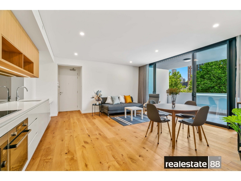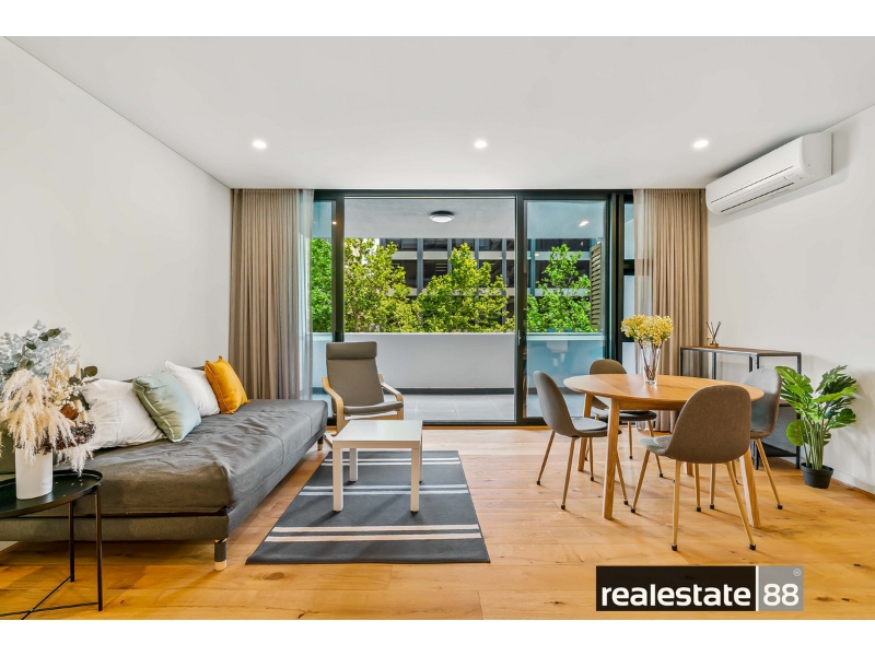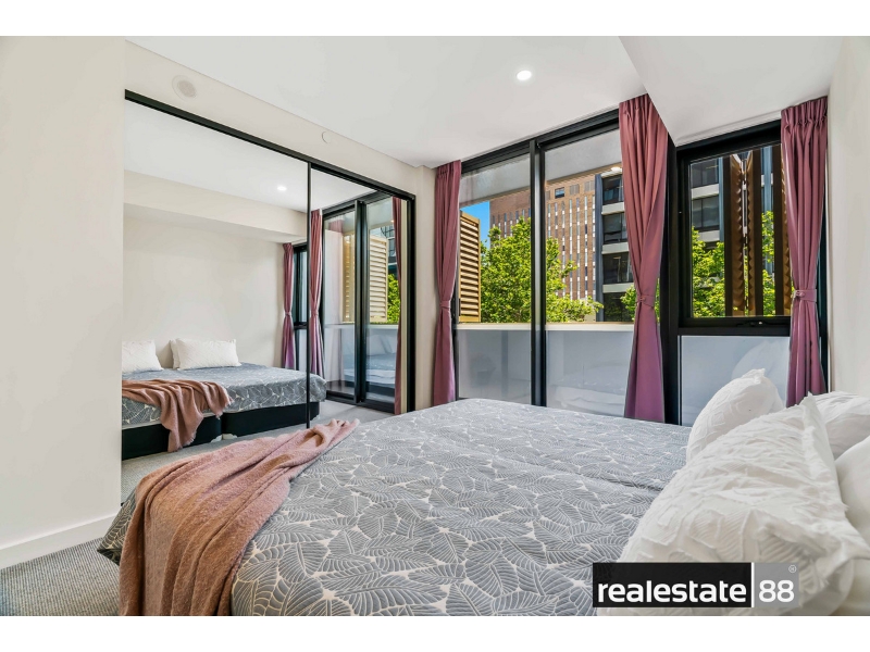You'll love this furnished extra-large one bedroom, one bathroom 'Verdant' apartment located on level 1! Top 8 REASONS TO LEASE ME: 1. Open plan internal living area with high ceilings and LED lighting throughout - plus a handy study nook for those who work from home. 2. Generous balcony with stunning City views and bi-fold screens to enjoy all year round in privacy. 3. Solid timber floorboards throughout living area for an extra luxurious feel. 4. Modern kitchen with integrated dishwasher, stylish glass splashback, ample storage and stone bench tops. 5. Spacious master bedroom with balcony access and built-in mirrored robe serviced by a well-appointed bathroom with trendy black frames. 6. Tucked away laundry for your convenience and reverse-cycle air-conditioning for your year round comfort. 7. The 20th level of the building is equipped with a gym, yoga deck, sauna, open-air cinema, pool table, private bar, swimming pool with views of Optus Stadium and spacious indoor/outdoor entertainment area to host your guests with BBQ facilities and kitchen. Facing the City, you will have never-ending picturesque views with these world class rooftop facilities! 8. Enjoy the close proximity to the Northbridge cultural and entertainment precinct, Yagan Square, the CBD and the broad selection of attractions Perth City has to offer! Explore dozens of restaurants, cafes, small bars, retail precincts, Perth's State Theatre, Art Gallery, State Library and more! Just minutes walking distance to Perth Train Station (Free Transit Zone), Northbridge, CBD, Parks and Hospitals. PARKING: One secure scooter bay and storeroom provided. DISCLAIMER: No car bay provided. LEASE LENGTH: 12 months preferred. VIEWING: Click GET IN TOUCH or BOOK INSPECTION to confirm an appointment by following the links and prompts or contact our Leasing Executive Toyah Dent on 0488 388 604 / 9200 6168 or leasing@re88.com.au - If no time is currently available, register your interest and you will be alerted when the next inspection time is scheduled. PLEASE NOTE: If you do not correctly register for a viewing, the time that you saw may not go ahead. Please remember to enter your correct details to stay updated with the home open time and any changes/cancellations that may occur. IMPORTANT: Applications will not be accepted without a prior viewing either in person or virtually. DON'T MISS OUT: Please be on time or early to your viewing so you have sufficient time to find parking and locate the property, fully inspect and ensure that it is suitable for your needs, as viewing start times cannot be extended and we cannot wait for you beyond the start time if you are late.