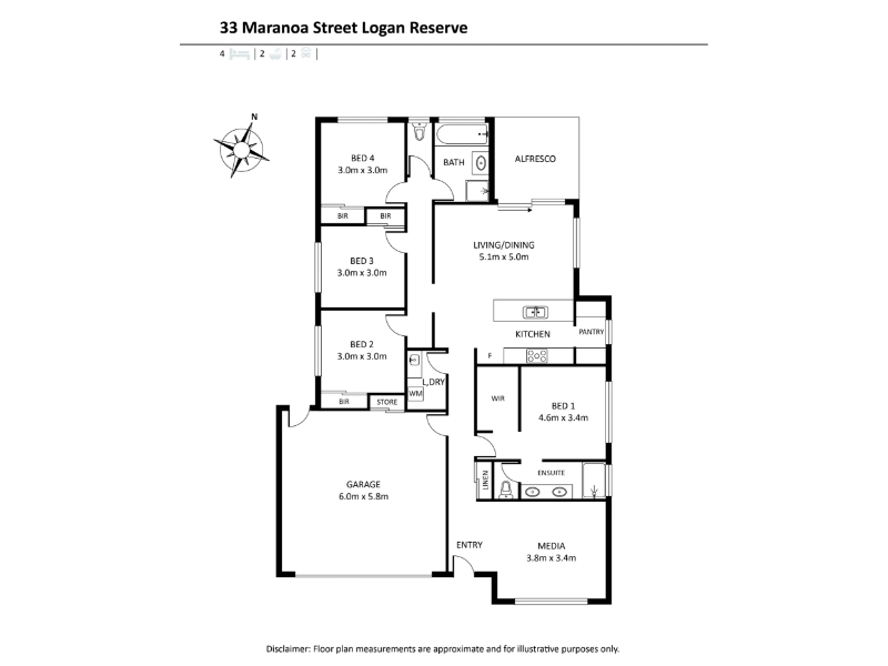 Welcome to 33 Maranoa Street, Logan Reserve. This family home ticks all the boxes. The FRD build has been carefully thought out with favourable inclusions, fitting for a family or professional couple. ** Please use Waze to find the property** ** please note rent will increase on 7/4/25 to $630per week** Upon entry, you are greeted with a media room perfect to set up additional living space. The modern brand-new kitchen accommodates large stone top bench & stainless steel appliances. It is the perfect kitchen to entertain & feed the little ones. The spacious living & dining area with split system air conditioning is positioned with views of the alfresco area & fully fenced backyard. The master suite features a walk-in robe, split system air conditioning, and an ensuite. All the bedrooms are a good size and feature built-in robes & ceiling fans. Additional Features: * Spilt system air conditioning - lounge room & master bedroom * Fully fenced * Matte black touches to bathrooms & bedrooms * Ceiling fans throughout * Modern kitchen equipped with stainless steel appliances, great cupboard space, gas cooktop & walk-in pantry * Block out blinds * Low-maintenance yard - great size * Large seperate laundry room * Toilet separate to main bathroom * Linen cupboard & additional storage cupboard in garage * Outdoor alfresco area If you are looking for a family-friendly home, wait no further and book your inspections now!