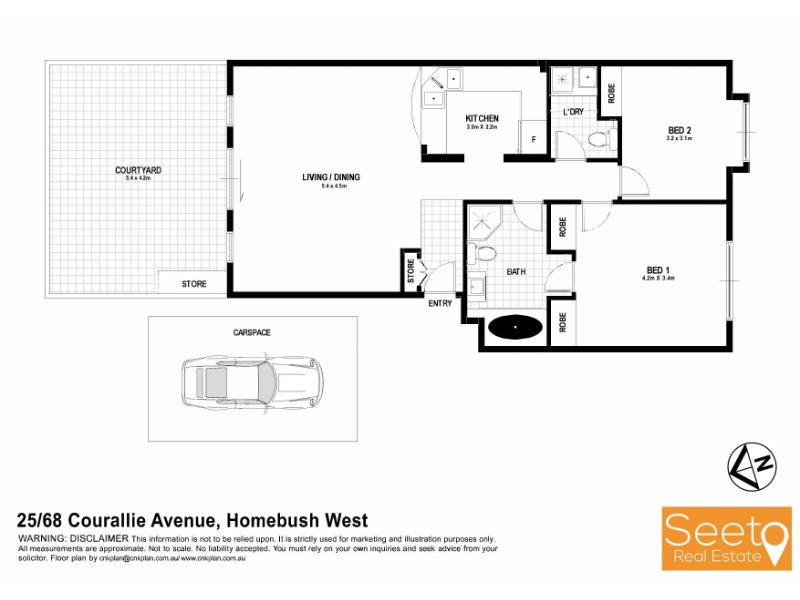 This apartment in the inner-west of Sydney offers convenient access to transport, shopping, and dining options. It is ready to move in and features generous living spaces and a large courtyard for entertaining. Located on the ground floor with only one flight of stairs to the carpark, the apartment is quietly isolated from road noise and faces north for the best sunlight. Both bedrooms have built-in wardrobes, and the main bedroom has a doorway to the bathroom, which can also be used as an ensuite. The bathroom has a separate shower and bath, as well as plenty of storage space. There is also a second shower and toilet across the hall. The open kitchen is equipped with gas cooking, stainless-steel appliances, a dishwasher, and plenty of cupboard space. The apartment has modern timber-style flooring, and the large, living and dining area leads to the spacious courtyard. Austin Park is just down the road, and the apartment is conveniently located near Paddy's Markets for fresh produce and the Saturday Night Food Markets. It is also a short drive from several shopping centres, including The Lidcombe Shopping Centre, Rhodes Shopping Centre, North Strathfield Bakehouse Quarter, and Strathfield Plaza. The apartment is easily accessible from Centenary Drive, Parramatta Rd, and the M4. At a glance: * North-facing, large courtyard with storage cupboards * Quietly positioned away from the road * 2 bedrooms with mirrored built-ins * Large, dual-entry ensuite, plus a second toilet and shower * Open kitchen with gas cooking and stainless-steel appliances * Storage cupboards * Intercom and access control * Moments from the station, shops, good schools, and Rhodes shopping centre * All images, floor plans, and text are for illustration purposes only. All properties are for lease under vacant possession. Images may be taken some time ago and you should rely on your own inspection. All measurements are approximate only. All parties should make and rely upon their own inquiries to determine the accuracy. Seeto Real Estate bears no liability for any loss sustained due to inaccuracy or omission.*
