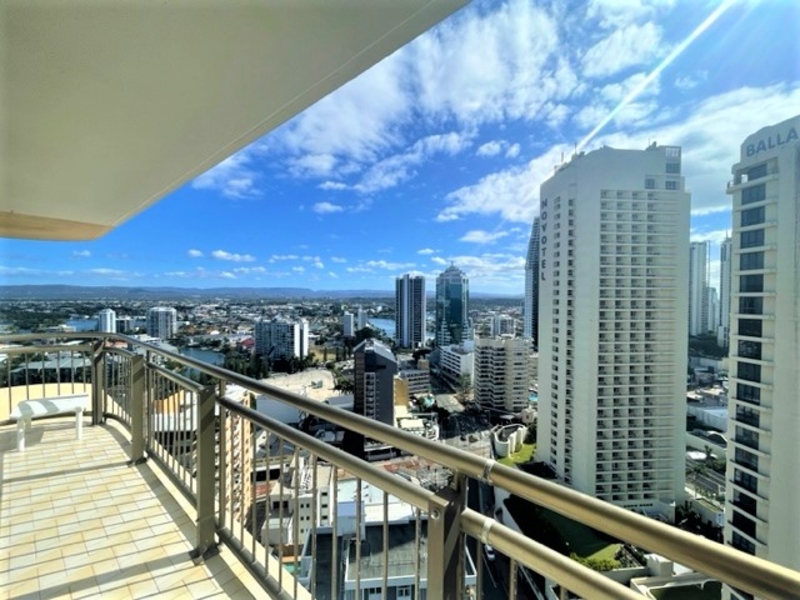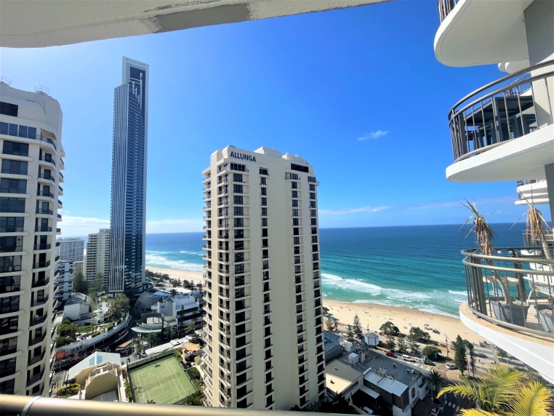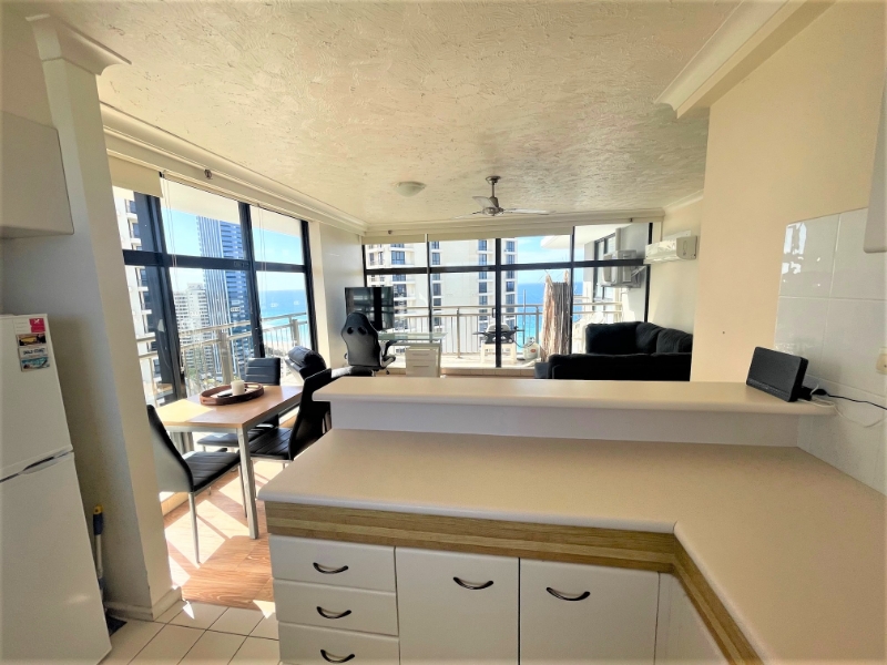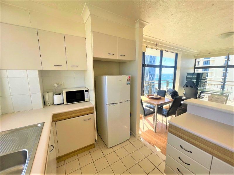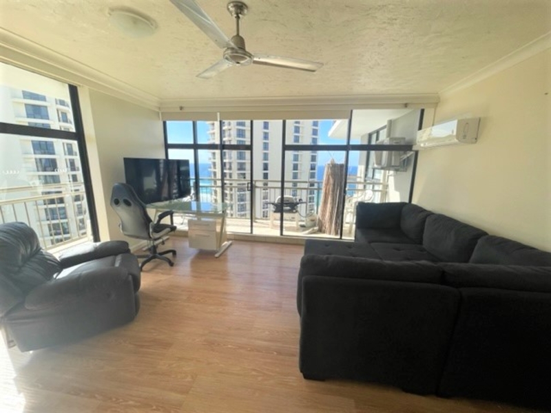 SEND ENQUIRY OFF AD TO RECEIVE LINK FOR 2APPLY APPLICATION - 12 MONTH LEASE FOR $695 p/w - RENT INCLUDES WATER AND ELECTRICITY - 2 AIR CONDITIONERS RARELY AVAILABLE, SPACIOUS 75 SQ M 1 BEDROOM FURNISHED UNIT ON THE 26TH FLOOR OF THE ICONIC BEACHCOMBER BUILDING. NORTH AND EAST FACING BALCONY FRONT AND SIDE. Features include: * 1 built in bedroom with king bed * Separate bathroom with washing machine and dryer * Full size kitchen with fridge, microwave, crockery, pots etc * Kitchen with great views to the mountains over the river * Vinyl timber look flooring throughout, no carpet * Lounge room with stunning views of the beach and north * Couch, table, TV, desk included as per photos * Reverse cycle Air conditioners to lounge and bedroom * Security onsite * Indoor heated pool * Outdoor pool and spa * Sauna * Tennis court with near new surface and bbq area undercover * 3 modern updated lifts * 3 min walk to Surfers Paradise beach and Cavill Avenue * Light rail very close - go from Surfers to Helensvale to meet the train to Brisbane * Take the light rail to Griffith Uni or Gold Coast Hospital or Broadbeach/Pacific Fair Shopping * Secure undercover car parking for 1 car * Available 17.1.24