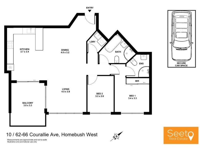 This beautifully maintained apartment is one of only 24 in a tightly held block. It faces east on the first floor with convenient access for all ages and abilities via a lift. Simply drive into the secure car park to your car space only a few metres from the lift that opens a few steps from your front door! Upon entering you are welcomed by the bright, spacious and open kitchen and living area which is air-conditioned. The balcony provides an oasis where you can relax or indulge your green thumb as you desire. Both bedrooms face east while the main has a built-in wardrobe and a generous ensuite. The main, marbled bathroom is spacious with a large bathtub and separate shower. The kitchen has natural stone bench tops, and comes with a gas stove, range hood, oven and dishwasher. For young children, Austin Park is just next door and the location gives you many options for shopping being on the doorstep of Paddy's Markets for fresh produce. Within a 10-minute driving radius, you can choose from The Lidcombe Shopping Centre, Rhodes Shopping Centre, North Strathfield Bakehouse Quarter or Strathfield Plaza. The stop for the free shuttle bus to Flemington and Strathfield is right in front and it's easy to access Centenary Drive, Parramatta Rd or the M4. You'll Love: * Well maintained complex, solid-brick construction, 1 of 24 units * First floor with lift access * 2 bedrooms, main with built-in wardrobe and ensuite * Internal laundry room with newly installed dryer * Open kitchen with stone bench tops, gas cooking, s/s appliances and newly installed dishwasher * NBN (FTTN), intercom & access control * 1 secure car space with lift access * Strathfield Connector stop at front of building for easy and free travel to Strathfield and Flemington station. * Water usage included * NO Pets Allowed * Please note that the air conditioning system at the advertised location is currently non-functional, and the aircon unit will not be replaced or repaired * * All images, floor plans, and text are for illustration purposes only. All properties are for lease under vacant possession. Images may be taken some time ago and you should rely on your own inspection. All measurements are approximate only. All parties should make and rely upon their own inquiries to determine the accuracy. Seeto Real Estate bears no liability for any loss sustained due to inaccuracy or omission.*