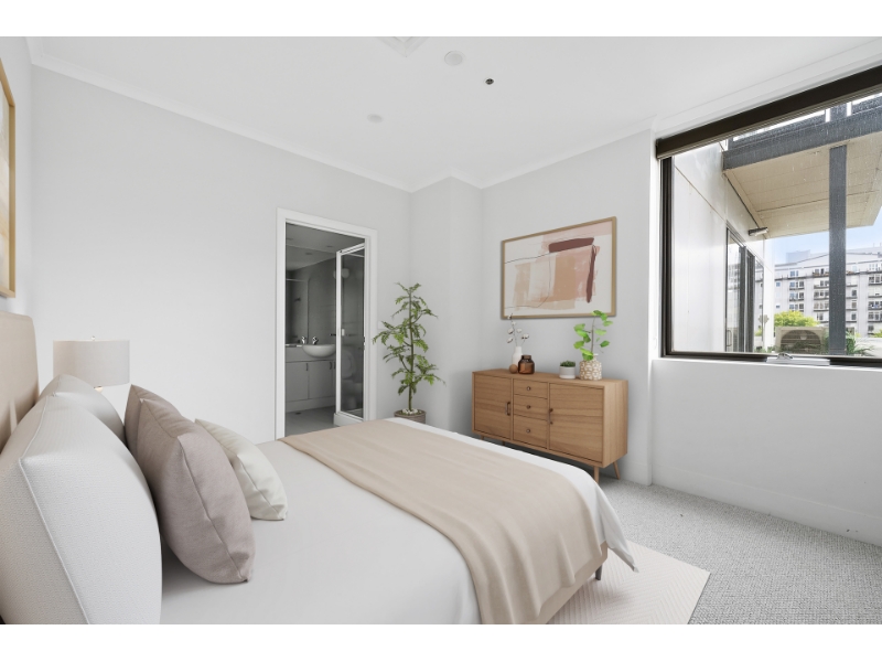 This spacious light-filled apartment is perfectly situated just moments away from the CBD, city tram, and Botanic Gardens, offering an enviable urban lifestyle. Located within a well-maintained iconic building, residents enjoy access to a range of amenities including a swimming pool, gym, tennis court, concierge services, and a private cinema. Step inside to discover two generously sized double bedrooms, with the master bedroom boasting its own ensuite bathroom. The apartment's open plan living area faces north, flooding the space with natural light and leading out to a terrace offering sweeping city vistas. Additional highlights of this remarkable property include ducted heating/cooling throughout and a secure basement car park. Don't miss the opportunity to experience luxury living at its finest!