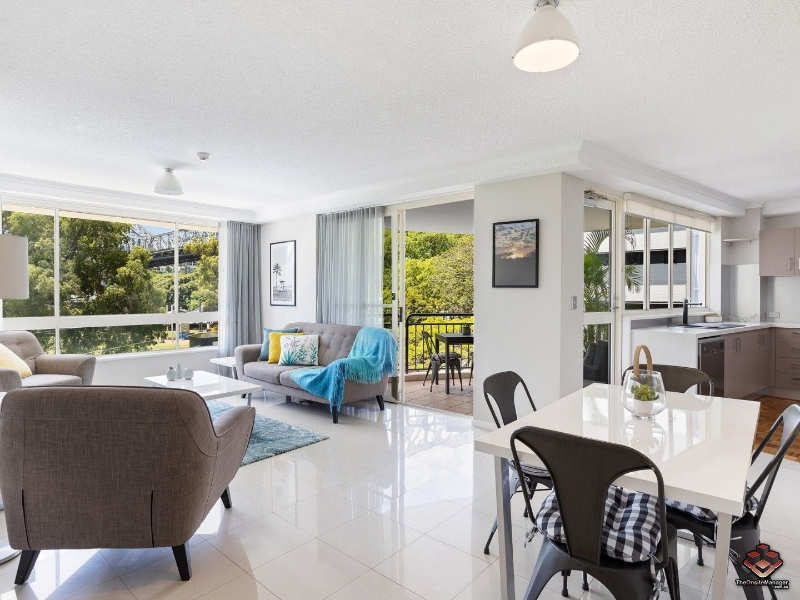 Perfect for the executive, this classy 3 bedroom, 2 bathroom apartment comes fully furnished. The spacious, light filled apartment in this sought after address faces North East with river, park and Story Bridge views. The modern kitchen and generous living & dining area all open on to a balcony perfect for enjoying a peaceful morning coffee (or evening wine?) while watching the world go by. A second, separate, balcony is accessed from the master bedroom suite, which includes a large wardrobe and en suite bathroom. Two further bedrooms are located at the other end of the apartment with a shared bathroom and separate toilet. Beautifully furnished with quality fittings, you will love coming home to this stylish and welcoming residence. Join the friendly community at Vantage Apartments – at the quiet end of Kangaroo Point. Enjoy the peace and tranquillity of this secure complex with pool and landscaped gardens – including a tenants’ herb garden. Great cafes and restaurants are within walking distance and the Holman Street ferry terminal is on your doorstep, so your car can be left at home in the secure underground car park. Features: Fully furnished – just bring your linen Three bedrooms - Master with walk through robe and en suite Living area & kitchen open on to generous balcony giving extra living space Second balcony off master bedroom Air-conditioned Quality appliances 2 secure car spaces (tandem) in basement garage Secure building with lift access On-site manager Apply For This Property Online: https://TheOnsiteManager.com/apply/21113378 (Listing ID: 21113378 )