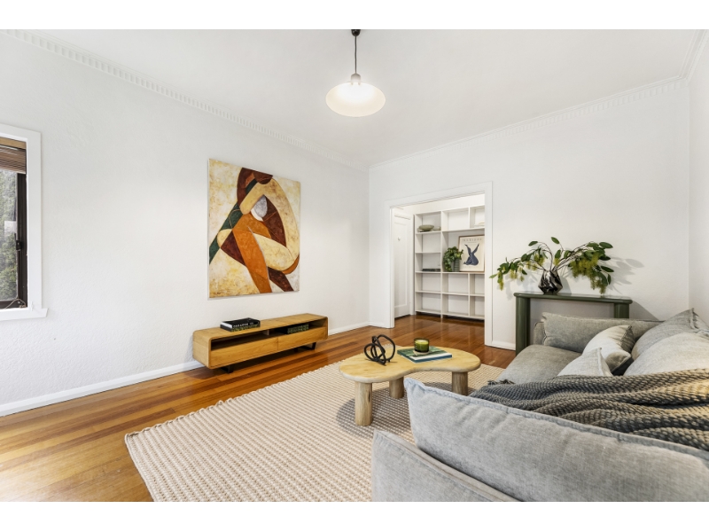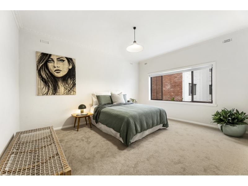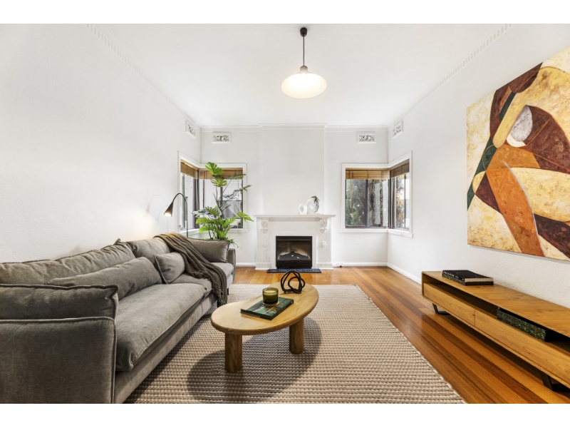Perfectly positioned just one block from the beach, this boutique first-floor Art Deco apartment delivers an enviable bayside lifestyle in one of Middle Park’s most sought-after pockets. Step inside to a welcoming entrance hall with built-in storage, leading to a spacious living room bathed in natural light. Polished floorboards, decorative built-in shelving and classic Art Deco character create a warm and inviting atmosphere throughout. The apartment features a generous main bedroom, second bedroom, a central tiled bathroom with laundry facilities, and a well-presented kitchen complete with gas cooking and a casual meals area. Residents also enjoy access to a communal garden, ideal for relaxing outdoors. Immaculately maintained and beautifully presented, this home is sure to impress. Enjoy easy access to Middle Park Beach, Armstrong Street Village, scenic coastal walks, sporting facilities, and excellent public transport options including city trams and light rail via Danks Street. A superb opportunity to secure timeless Art Deco charm in an unbeatable bayside location.