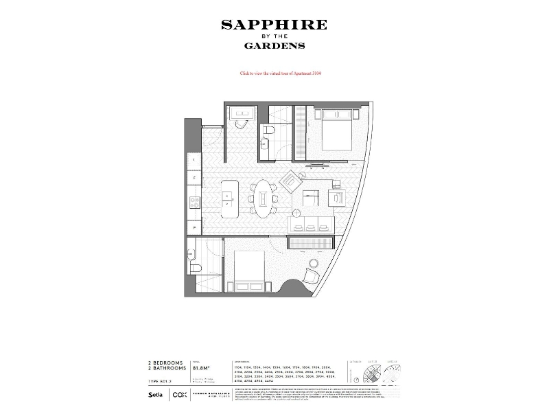 Sapphire By The Gardens is a luxury residential tower alongside the 5 star Shangri-La international hotel. A skybridge connects the two towers creating an iconic sculpture in the Melbourne city skyline. Features: East facing, separate study, neutral tones, gourmet kitchen with induction cooking, beautiful wooden flooring in the living areas, built in mirrored robes in both bedrooms, AC/ Heating. ** includes fridge, washer, clothes dryer and electric blinds** Located on the northern position of the Melbourne CBD and located opposite the UNESCO World Heritage Carlton Gardens, Sapphire By The Gardens will undoubtedly be one of the best positioned residential buildings in Melbourne. Nestled in a prime location, this exquisite 2-bed 2-bath plus study apartment is now available for rent, offering a lifestyle of elegance and comfort. Sapphire By The Gardens offers everything residents need to enjoy a true luxury lifestyle. From the 24-hour concierge in the magnificent lobby to the sky bridge high above. The two towers will also be home to one of Melbourne's largest ballroom, private dining and bars, and a range of relaxing pool, spa and wellness spaces. Contact PRD to arrange an appointment