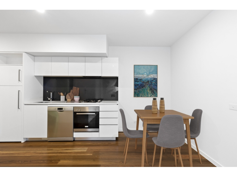 This designer 1 bedroom retreat sets a high standard for market entry excellence. Located on the fourth floor of the Fender Katsalidis-designed Zest apartment complex, walk downstairs to Carlton Baths, Melbourne University, Rathdowne Village cafes, city-bound trams, Cinema Nova, and Lygon Street restaurants. Contemporary comfort is highlighted by a streamlined kitchen with smooth stone surfaces and quality stainless-steel appliances including a Bosch dishwasher, four stove top burners, and an integrated Fisher and Paykel fridge/freezer. Always free-flowing, spacious open-plan living and dining pivots a balcony boasting leafy views over an internal garden. A mirror-robed bedroom also captures north-western light, sensationally serviced by a chic and sleek bathroom with a fully tiled walk-in shower, mirrored cabinetry, and laundry capability including an LG washing machine. Featuring: - Secure parking - Video intercom entry - Split-system heating and cooling - Timber flooring - Roller blinds - Recessed down-lighting Inspect now to avoid disappointment.