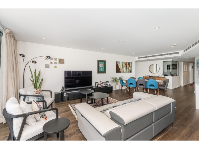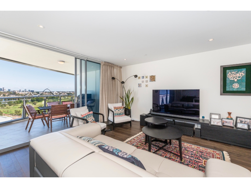 Experience elevated apartment living in one of Perth’s most dynamic lifestyle precincts. Positioned high above the Burswood Peninsula, this premier residence captures sweeping river, city and park views, offering a home designed for those who appreciate quality, space and convenience. The expansive open-plan layout makes full use of the generous 145sqm internal living area, seamlessly flowing onto a sun-drenched 29sqm balcony – the perfect setting to relax or entertain while enjoying the Perth skyline. The thoughtfully designed interior features three well-sized bedrooms, each fitted with built-in robes and direct bathroom access, plus a dedicated study designed to comfortably accommodate two workspaces – ideal for professionals or those working from home. The well-appointed chef’s kitchen is fitted with quality European appliances and ample storage, making everyday cooking effortless and entertaining a pleasure. Additional features include: -Three spacious bedrooms with fitted robes and bathroom access -Dedicated fitted study suitable for two workstations -Designer kitchen with premium European appliances -Expansive open-plan living and dining area -29sqm balcony with panoramic river and city views -Reverse cycle ducted air conditioning for year-round comfort -Two secure underground car bays -Generous storage cage Resort-Style Facilities & Prime Location Residents enjoy exclusive access to beautifully landscaped gardens, a sparkling heated swimming pool, fully equipped gymnasium, secure entry and underground parking. Located within walking distance to Crown Towers, Optus Stadium and riverside parklands, this address offers unmatched access to entertainment, dining and events. Convenient connections to the CBD, airport, train station, major highways, pedestrian bridges and cycling paths make commuting simple. If you’re seeking a premium lifestyle with views to match, this exceptional residence delivers on every level. Interested? Enquire today to arrange your viewing.