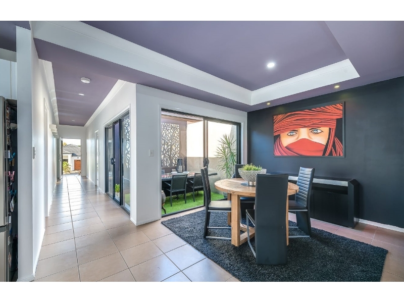 * We respect your time and ours, you will be contacted 60 minutes prior to the scheduled inspection. If you don't confirm via phone or email we will not show. * Great location in the much sought-after Merrimac this Duplex offers space, elegance, style, and charm with peaceful private surrounds featuring 3 bedrooms, 2 bathrooms, a chef's delight kitchen with dark benchtops, breakfast bar and white cabinetry. Open plan living, dining with recess ceilings and a central courtyard. To the rear is a fully floor-tiled undercover entertainer with a ceiling fan, low-maintenance gardens fully fenced and garaging and laundry. Having air-conditioning and a Solar system with 21 panels and a quality inverter. Set in a quiet cul de sac adjacent to a park, children's play area and walking tracks Features: Pebble Crete driveway Artificial turf Side gate Steps to entrance key code door pad Crim safe door Long wide fully tiled hallway with wall lights Bedroom 3 with Feature wall in 3d bamboo design Ceiling fan light Double mirrored robes Bedroom 2 with feature wall in 3d bamboo design Chandelier lighting Triple mirrored robes Wall mounted tv and bracket Main bathroom Shower, vanity, wall mirror, bath Two-way access to the centrally located courtyard via two sliding doors and has a feature wall and Artificial turf Separate dining area with feature wall Modern kitchen Fridge recess and pantry Lots of above and below bench storage cupboards and drawers Dark bench tops/white cabinetry Ceramic cooking tops, Range hood, Oven AEG - Dishwasher Double sink and mixer tap Breakfast bar with bamboo facia and under-bench LED lighting Formal/family living with recess ceilings, fan and fully air-conditioned Master bedroom with 3d bamboo feature wall Ceiling fan light Walk through the space to WIR with shelving, skylight and en-suite bathroom. Features large shower recess, Vanity/mirror. Two wall cupboards with mirrored doors Towel rails, skylight The rear private under-cover entertainer can be accessed via the bedroom or living area. The outdoor retreat is fully floor tiled and with a ceiling fan. Manicured gardens with artificial turf, sandstone boulder rock Bamboo façade with native plants and trees, low maintenance Garaging with shelving and Laundry including clothes dryer. Additional Information • Air-conditioning • Security screens