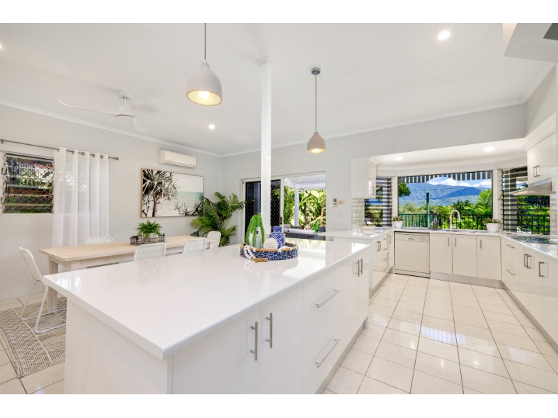 Delivering a tranquil, uninterrupted outlook over the Yorkeys Knob Marina, Half Moon Bay, and the mountains beyond, this expansive plantation style property emanates a graceful charm, sublime privacy, and a refined ambience. The spacious two-level layout encompasses multiple living spaces, wraparound veranda and relaxing outdoor entertaining areas, overlooking the refreshing inground pool and views beyond. Set on a large, corner block the property includes a level 200 m2 grassed area at the rear, with separate access. Just a stone's throw from the marina, beach, 18-hole golf club, local shops and school, it is approximately 15min from Cairns International Airport and less than 20km to Cairns CBD. With it's stunning aspect and outstanding positioning, this is a truly unique and highly desirable residence. Features: - Extra-large master bedroom, with generous ensuite, a perfect parents retreat - Fresh, contemporary kitchen integrated with spacious dining area - Family focused design, allows you to watch over the pool from the kitchen - All upstairs bedrooms open to a large, covered deck with gorgeous views - 5 or 6 bedrooms (2 with ensuite bathrooms) BIR's, all air conditioned - Oversized double garage with workshop & mezzanine, plus off street parking - Fully fenced, nestled within established, low-maintenance tropical gardens - Levelled grass area with separate entry * Please note - this property is unfurnished, furnishings are for display only and not included in the tenancy ** Prospective tenants are encouraged to submit an online application for processing. Should your application be approved, you will be contacted, and a private inspection arranged. To apply, simply visit our agency website and click APPLY NOW on the rental listing to be directed to the online application portal.**