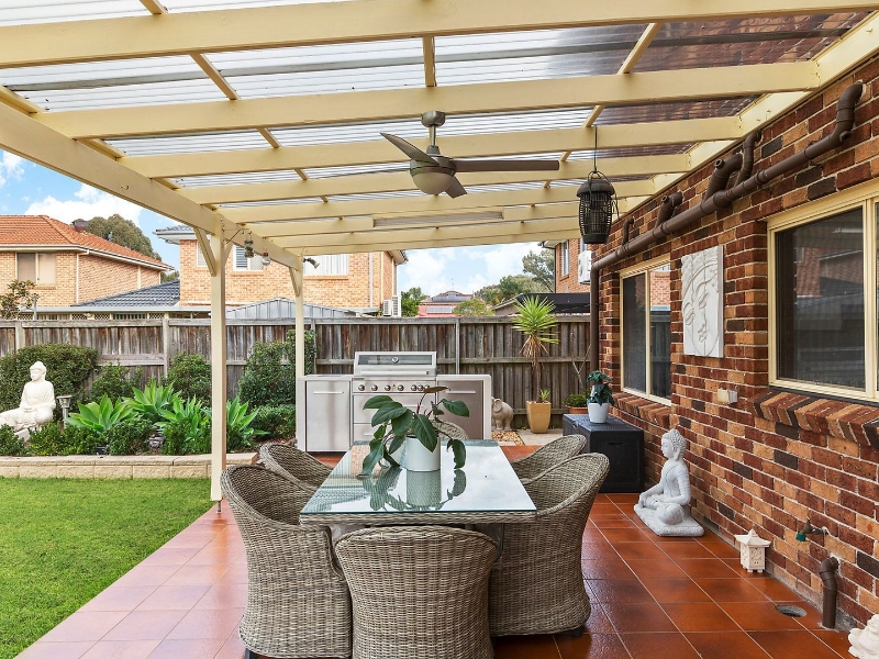 Conveniently positioned within a short stroll to Woodcroft Village, this spacious two storey home is in impeccable condition. Recently renovated, the home offers multiple living options with a seamless indoor/outdoor lifestyle. - Master suite with a stunning new ensuite, walk in robes - Recently renovated kitchen with dishwasher, yard outlook - Generous bedrooms, ducted air con, built in robes in all - Formal lounge/dining bathed in natural sunlight, gas outlet - Separate family room, internal access to the double garage - Main bathroom with bathtub, modern laundry, third toilet - Tiled flooring throughout downstairs, easy care maintenance - Fantastic outdoor undercover entertaining, two garden sheds - Oversized 576sqm level parcel of land - 400m walk to Woodcroft shops, stroll to Woodcroft reserve