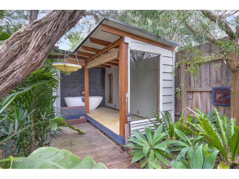 Wait until you see what is waiting for you in the backyard! An outdoor private bathroom, secluded in an oasis of tropical trees, a pond, and with the sound of frogs and birds singing you will never want to leave. There is extensive decking and outdoor shower for a quick washdown after your visit to the beach. Three bedrooms upstairs, small balcony overlooking the rear yard and split system to master bedroom, separate living, kitchen / meals area, bathroom, laundry and toilet downstairs. The home is an original holiday home with added rooms, to make this a bit of a hidden treasure with lead light windows, hidden rooms and a fantastic rear yard for all to enjoy.