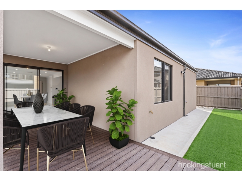 Be the first to enjoy this high end spacious home that has it all! The kitchen is the heart of home and entertainers dream with a huge island bench, cooking appliances for the master chef within and a large walk in pantry. The open plan living area then leads out to an undercover alfresco with build in bench seats and a low maintenance yard leaving less time gardening and more time enjoying your new home. 4 bedrooms, master with ensuite and walk in robe, remaining 3 bedrooms with built in robes. Additional features include, double remote garage with internal access, ducted heating and cooling and alarm system. Located within walking distance to Riverdale Village Shopping Centre and a short drive to Tarneit train station, Tarneit Central Shopping Centre, Tarneit Rise Primary School, Tarneit P-9 college and having your closest bus stop only 550M away, this home will tick all your boxes.