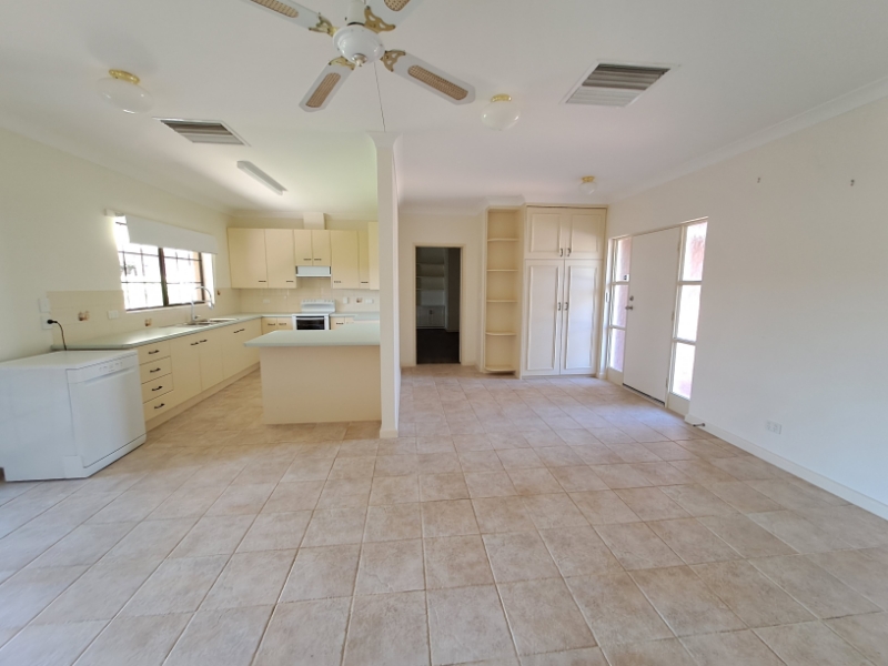 This four bedroom, two bathroom home is located in a quiet court in Desert Springs. Main features include: - Spacious living area with timber-look flooring - Kitchen with electric cooking, dishwasher and ample storage - Separate fully tiled dining area - Split system air-conditioning throughout - Main bedroom with walk in robe & ensuite - Ensuite with shower, vanity and toilet - Three further bedrooms with carpet and built in robes - Main bathroom with bath, shower, vanity and toilet - Internal laundry with additional storage - Large back yard with undercover outdoor entertaining area - Separate workshop with power and air-conditioning - Double carport Don't miss out, apply online today!