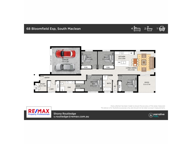 Discover your new home in the picturesque Pebble Creek estate of South Maclean! This immaculate, new residence is ready for you to call home. Step into the spacious open-plan kitchen and living area that seamlessly flows into the covered outdoor alfresco space. The well-appointed kitchen is a haven for aspiring chefs, boasting ample overhead storage and cupboard space. Your master bedroom offers a walk-in robe and a luxurious ensuite for your comfort. The three additional bedrooms feature built-in robes and generous proportions. Stay comfortable year-round with ceiling fans in all bedrooms and ducted air conditioning Create cherished memories while entertaining family and friends in the inviting outdoor covered alfresco area. Don't miss the opportunity to make this remarkable property your new home. Schedule a viewing today and conveniently apply online to secure your future in this stunning residence. Inspections – Please ensure you register if you would like to inspect the property. Inspections with no registered attendees may be cancelled without notice. Disclaimer – All information contained herein is gathered from sources we believe to be reliable. However, we cannot guarantee its accuracy and interested persons should rely on their own enquiries.
