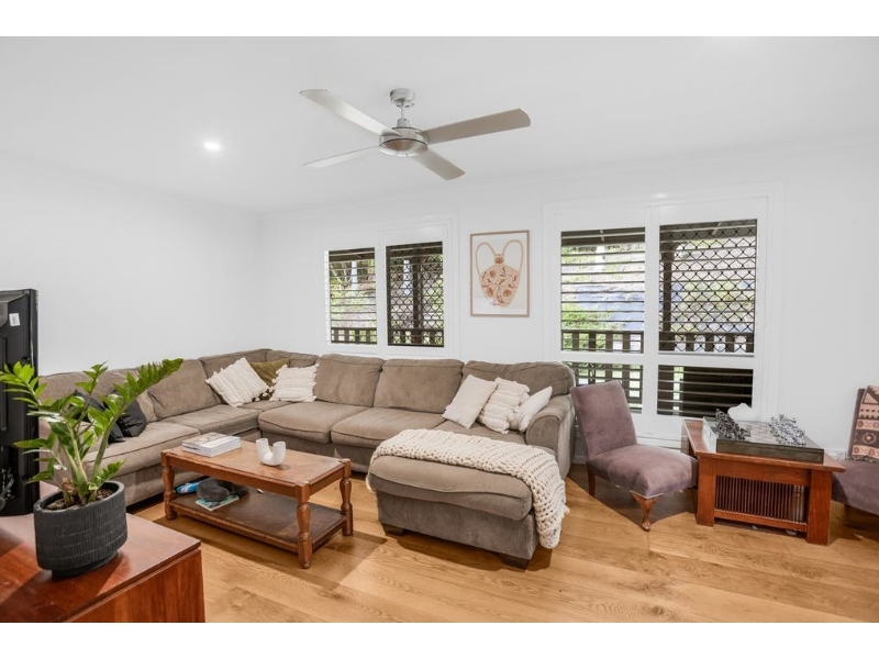 FEATURES AT A GLANCE - * Large private block with an abundance of space * Granny flat with kitchenette * Air conditioning, screens and fans for year-round comfort * Deck area overlooking lush greenery. Enjoy this country cottage which is tucked away in a private location with just local traffic using the area. Surrounded by greenery and a lush tropical setting, you are going to love the space and nature on offer here at 31 Gyndier Drv, Tinbeerwah. The home lends itself to an array of tenants with multiple living areas spread over three levels. The ground floor houses the granny flat with large lounge area, bathroom, laundry and kitchenette, this space is private and easily accessed. The middle level you will find the master bedroom with large walk through robe and two-way modern bathroom. Bedroom 2 is of good size and offers plenty of natural light and storage options. The whole family will surely enjoy movie night in the lounge area which is tucked away off the kitchen and as a beautiful open layout and plenty of natural light. The kitchen is functional with plenty of bench and cupboard space plus a dishwasher island bench. The timber floors throughout give the property a homely country feel whilst adding character to the home. Outside you will find a generous deck area overlooking the rear yard, this is the perfect place for dining and entertaining friends. The upper level of the home houses bedrooms 3 and 4 plus a small lounge/office area plus a 3rd bathroom. Amazing space for the kids, let them have their own space whilst still being part of the family abode. Double carport space under the home plus lots of room for storing the toys plus bits and pieces. Arrange your inspection today, you are going to love living here with the relaxed country vibe, yet such close proximity to Tewantin, array of schools and local shops - arrange your inspection today! Please note, property is not fully fenced - may not be suitable for your pet. 0911 T2.