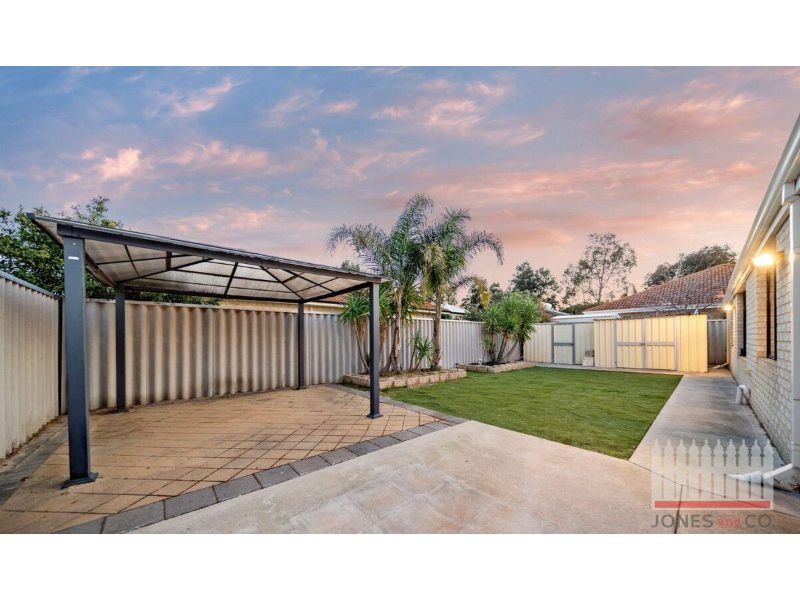 When the location has you moments away from the vibrant hub of Bennett Springs, you will fall in love with this family sized home. With room to move and a spacious floor plan, have all the modern necessities at your fingertips with the advantage of the Swan Valley region within reach. Local shopping centres, cafes and schools are on offer with a short drive to town or the airport. Simply too many features to list you must come and view this property! Featuring: * 4 Bedrooms, main with walk in robe and built in robe to some minor rooms * 2 Bathrooms & 2 toilets * Separate Theatre room * Open plan living and dining area off the kitchen * Extra study nook or toy area for the kids between the minor bedrooms * Large kitchen with stainless steel appliances, dishwasher and walk in pantry * Internal laundry with storage * Double lock up garage with access to the rear yard space * Alfresco with gazebo - all fully fenced * Garden shed with astro turf to front and back for low maintenance. * 12 month lease available from 10/10/2024 If you would like to know more about the property please contact 9377 3336 or click on contact agent to email your enquiry. Please go directly to book your inspection or to register to join an existing inspection. PLEASE NOTE if you are not registered online we cannot notify you of any time changes or cancellations to inspections. Please be aware you are not permitted to enter the premises without a Jones & Co Property representative accompanying you