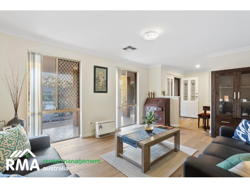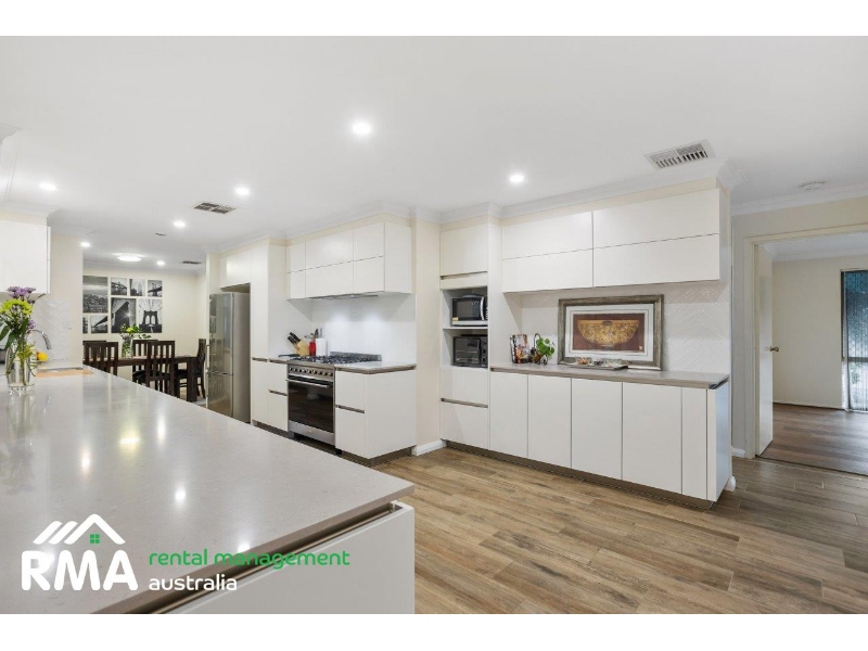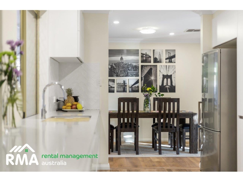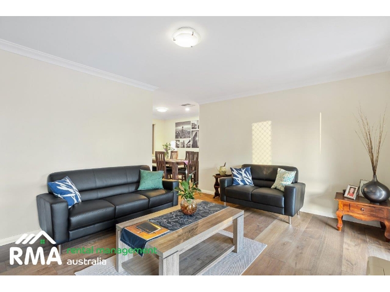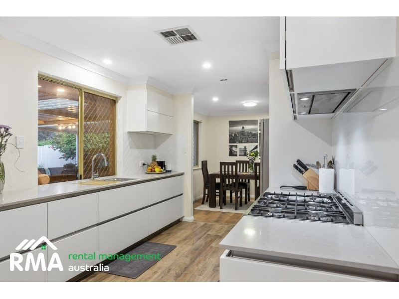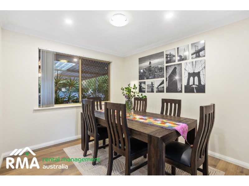 Superbly situated in a tranquil looped street within what is arguably Nollamara's most sought-after pocket, this fantastic 4 bedroom 2 bathroom family home will pleasantly surprise you with what lies beyond its front door including spacious rooms and a flawless integration between indoor living and private outdoor entertaining. Low-maintenance front and rear established gardens set the tone for a relaxed modern lifestyle here, with the huge backyard also playing host to a lemon tree, a large rear garden shed, plenty of trees and shade and a generous patio area to top it all off, with the sounds of chirping local birdlife singing away in the background. Inside, timber-look floor tiles grace the entry, as well as the separate second toilet, a revamped laundry and the central open-plan kitchen, meals and family area where most of your casual time will be spent. A massive renovated German kitchen oozes style and class in the form of sparkling stone bench tops, ample storage options, soft-closing drawers, a breakfast bar for quick bites, an integrated Bosch range hood, a six-burner Smeg gas cooktop/oven and an integrated AEG dishwasher for good measure. The alfresco can also be seamlessly accessed from this part of the house. Easy-care wood-look floors dominate the formal front lounge and dining room that also features a gas bayonet for winter heating. The flooring continues into a commodious front master-bedroom suite, where a walk-in wardrobe complements a light and bright ensuite bathroom rain shower, toilet, vanity and all. The large second, third and fourth bedrooms are all carpeted and have fitted built-in double robes. They are also serviced by a light-filled main family bathroom with a shower, separate bathtub, vanity and under-bench storage space. A delightful children's playground at the leafy Corrington Reserve sits just around the corner, whilst both Dianella Primary College and Dianella Secondary College are only walking distance away, as well. Our Lady of Lourdes School is also nearby, as are shopping at The Square in neighbouring Mirrabooka, other excellent educational facilities and grocery options, community sporting facilities, public transport and major arterial roads for easy access to the coast, the city, Perth Airport and even our picturesque Swan Valley. Quiet, comfortable and convenient this outstanding residence is just about the complete family package! FEATURES INCLUDE, BUT ARE NOT LIMITED TO: - 4 bedrooms, 2 bathrooms - Double-door entrance - Formal lounge and dining room - Open-plan family, meals and kitchen area - Kitchen renovated in 2019 with stone bench tops and an integrated dishwasher - Large front master suite with a WIR - Spacious 2nd/3rd/4th bedrooms with BIR's - Separate bath and shower in the main bathroom - Renovated laundry with subway-tile splashbacks, over-head and under-bench storage and external/side access for drying - Updated separate 2nd toilet - Linen press - Paved rear drying courtyard - Solar-power panels - Ducted reverse-cycle air-conditioning - Gas-bayonet heating - Feature ceiling cornices - Feature skirting boards - Foxtel connectivity - Outdoor power points - Security doors and screens - Gas hot-water system - Large garden shed - Established front and rear gardens - Front rose garden - Lemon tree - Remote-controlled double lock-up carport with a side storage lean-to - Rear/drive-through access to the alfresco and backyard - Extra parking space out on the front verge - Side access HOW TO INSPECT THIS PROPERTY Arranging inspections is easy. Simply click on the button above 'Request an inspection' then enter your details or alternatively go to our website and book the inspection on this site by entering your details and choose an appointment time that suits YOU. You will be INSTANTLY informed of any updates, changes or cancellations for your appointment. If no one registers for an appointment time - then that appointment may not proceed. So DON'T MISS OUT book for an appointment today! *Important* Whilst every care is taken in the preparation of the information contained in this marketing, Rental Management Australia will not be held liable for any errors in typing or information. All information is considered correct at the time of printing.