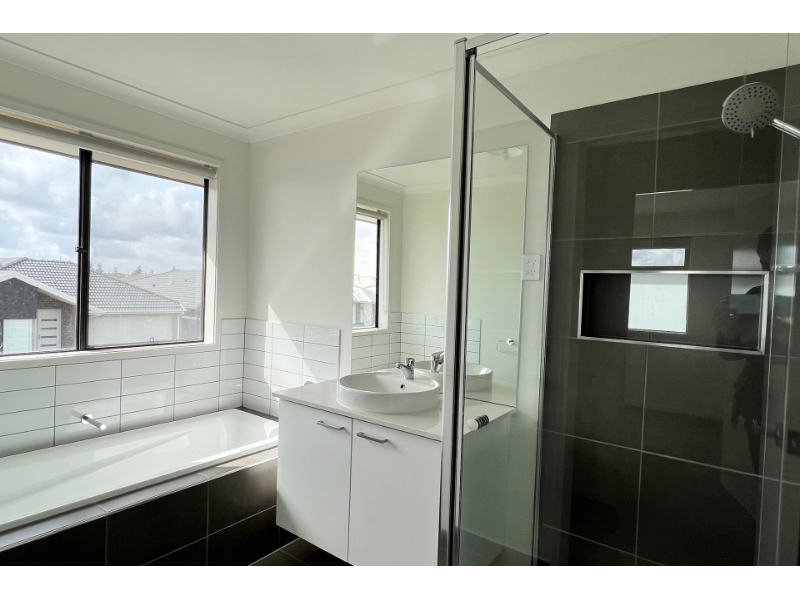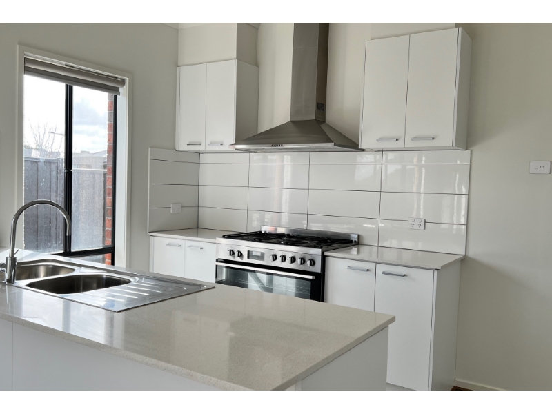This like-new family home is located within a quiet new estate, just a short walk to the local park & a short drive to the local schools, shops, and Cobblebank & Melton South train stations. Accommodation Downstairs - Modern open plan kitchen with 900mm stainless steel gas appliances and dishwasher space for storage - Separate Lounge downstairs - Powder Room Downstairs Accommodation Upstairs - 3 generous sized bedrooms - Master with en-suite & walk in robe - Other two bedrooms with built in robe - Second living area upstairs - Large sized central bathroom and toilets Additional Features - Low maintenance backyard - Double remote garage - Ducted heating - Evaporative Cooling