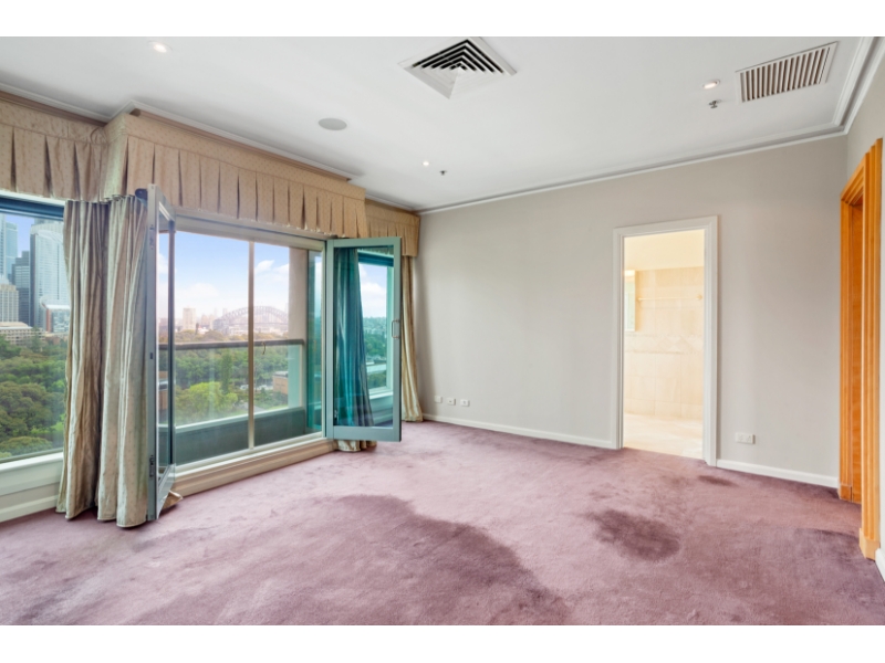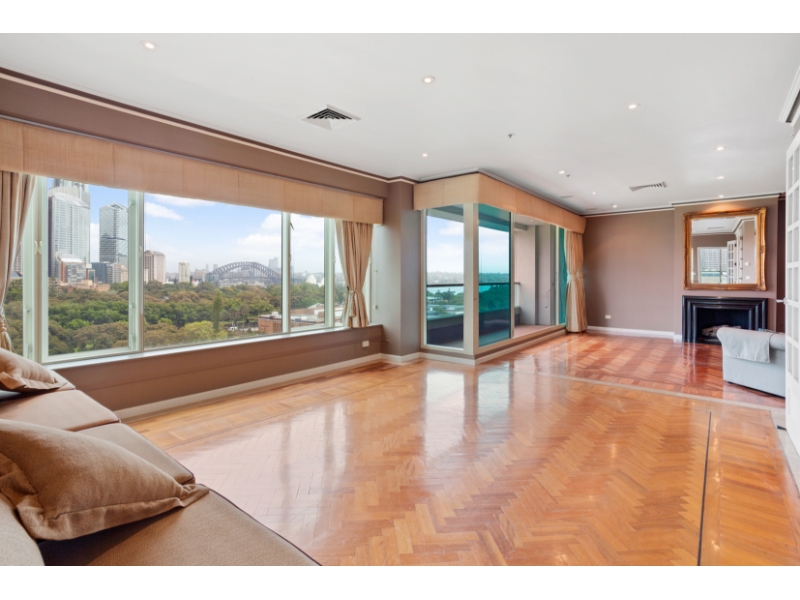 Immaculately presented unfurnished Three-bedroom penthouse offering three & a half bathrooms and parking for two cars. Set over 210sqm it's one to inspect. Featuring - Two open plan living and dining areas, one casual and one formal for entertaining - Spacious elegant master bedroom with walk-in wardrobe, marble ensuite with spa bath - Large second bedroom with built-in and ensuite - Third set up as an amazing work-from-home space - Floor-to-ceiling windows with spectacular views from every room - Water views to Sydney Harbour Bridge, Farm Cove and Woolloomooloo Bay - Parkland views across Hyde Park, the Domain and Botanic Gardens to the Opera House - Distinguished parquetry in living areas and plush carpeting in bedrooms - Ducted air-conditioning and heating - Granite kitchen with dishwasher, coffee machine and Miele stove - Two car spaces with direct lift access - Security building with concierge and video intercom, - Spa, sauna and gymnasium looking onto a private garden - 5 minutes walk to NSW Art Gallery & Botanic Gardens