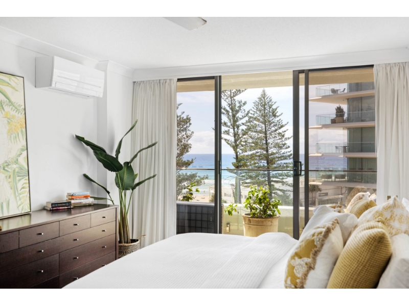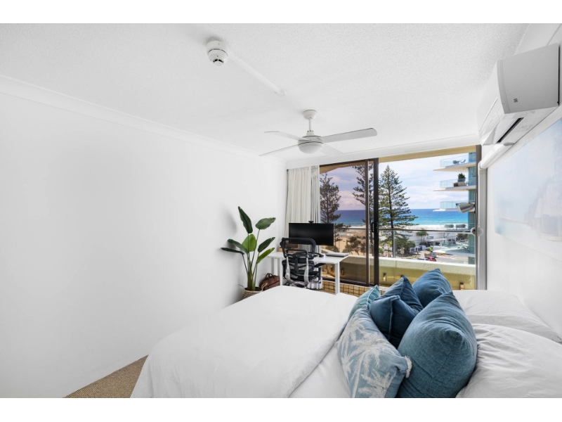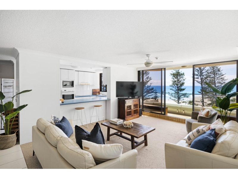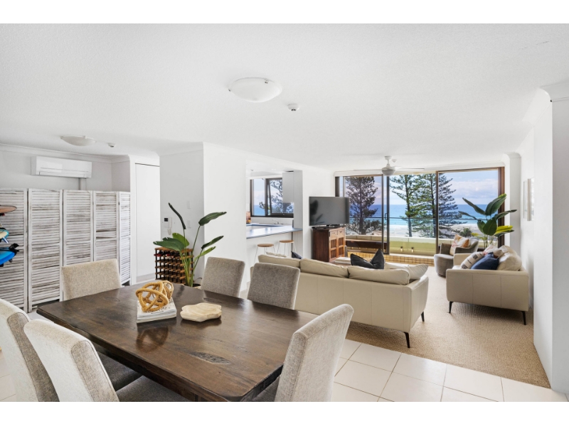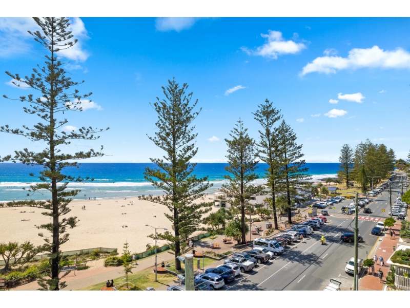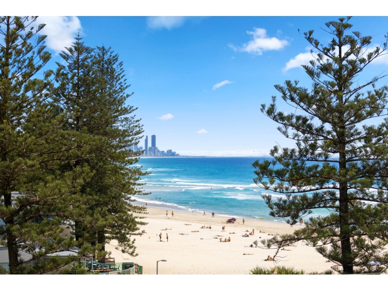 This magnificent ocean front apartment is situated on a premium beachfront site in one of Burleigh's iconic buildings 'La Pacifique' and affords glorious uninterrupted North Easterly views of the ocean. It offers easy flat access to the beach, shops, award winning restaurants, Burleigh Bowls, National Park Headland and transport to all the main shopping centres, clubs, airport, tourist and leisure spots. - Oceanfront with magnificent North Easterly views of Burleigh beach & the city skyline - Spacious open plan living with ocean views everywhere - Kitchen with breakfast bar & plenty of bench & cupboard space - Generous balcony, to sit, relax & enjoy the views - Large master bedroom with ensuite, built-ins, fans, air-con & balcony access - Good sized 2nd bedroom with built-ins, fans, air-con & balcony access - Main bathroom/laundry with bath & separate toilet - Secure building with resort facilities, security intercom - Undercover security parking for one car - Sparkling inground heated swimming pool, large heated indoor spa - Sauna, relax room, games rooms, gym & full-sized flood lit tennis court - Located across from the world-famous patrolled beaches of Burleigh - Walk to shops, bowling club & cafes PLEASE REGISTER TO INSPECT
