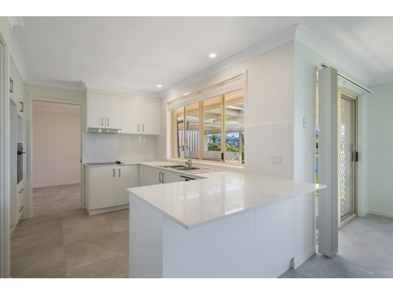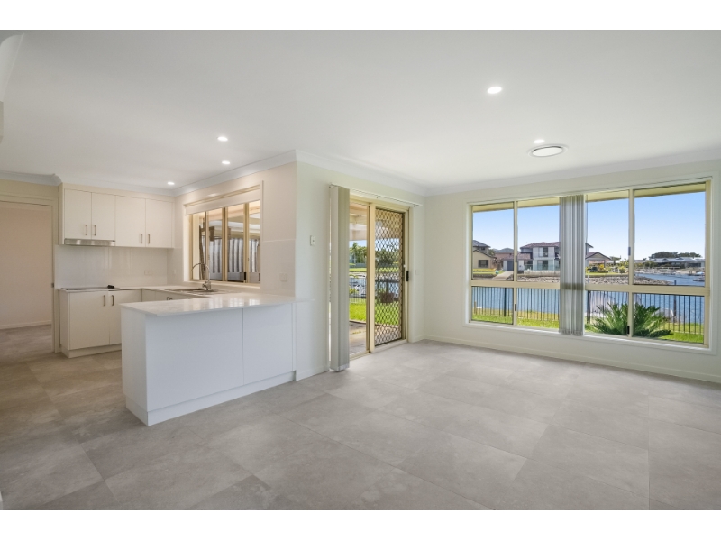This stunning waterfront four bedroom family home encompasses a sleek modern feel with beautiful marble-like finishes and archway accents. The spacious open-plan living and dining area offers those spectacular waterfront views, extending out onto your own private outdoor and undercover patio - perfect for entertaining and hosting guests. Bathed in natural light, it flows seamlessly into a second rap-around living space highlighted by a beautiful archway. This versatile area can serve as an extra living space, study, formal dining, or a movie room. Additionally, the conjoining and newly installed pristine white kitchen features an electric cooktop, walk-in pantry, ample storage and a large fridge cavity. The four bedrooms offers a fresh retreat with brand-new carpeting, built-in storage, ducted air conditioning, and LED down lights, whilst the master bedroom, adorned with a bay window, ensuite with skylight, and walk-in wardrobe. The three-way bathroom showcases another exquisite arch feature, polished tiles, dual sinks, a separate toilet, and a relaxing soaker tub. With beautiful grey wash marble flooring, ducted air conditioning and LED down light throughout, this property truly speaks for itself. Convenient laundry facilities with storage, double car garage, and a private jetty with a peaceful outlook completes this beautiful home. Situated in convenient and peaceful location, enjoy a short drive into Ballina's CBD, local schools and coastal hotspots.