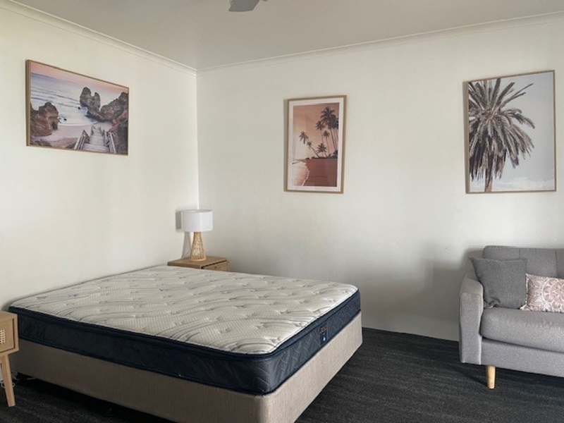 Studio Apartment – * Air Conditioned Furnished with – * Queen Ensemble * TV * Lounge Suite * Fridge, Elec Jug, Toaster * Covered Entertainment Area with Outdoor Setting Bring your linen and beach towel. Disclaimer: The Agent does not give any warranty as to errors or omissions, if any, in these particulars, the provided information can be deemed reliable but not accurate. Any persons interested in the property should conduct their own research. Location shots and use of furniture (real or virtual) may be for visual display purposes only and not included in the lease.