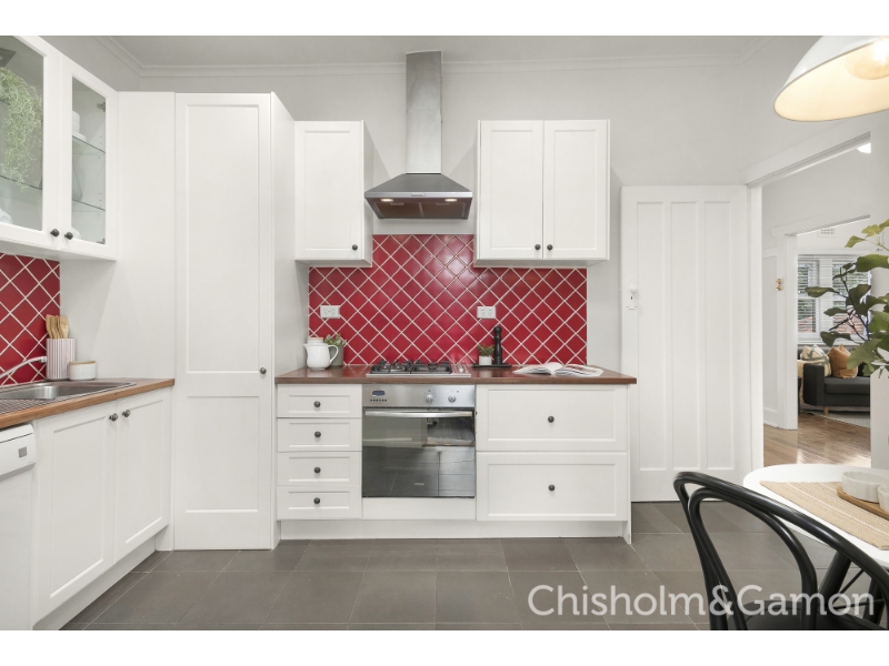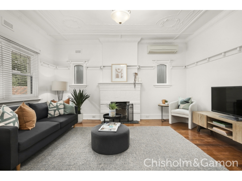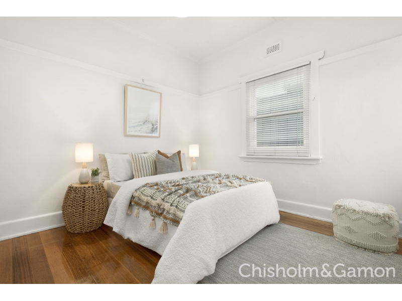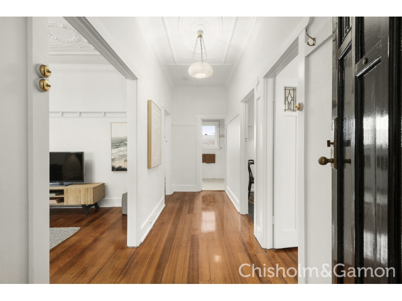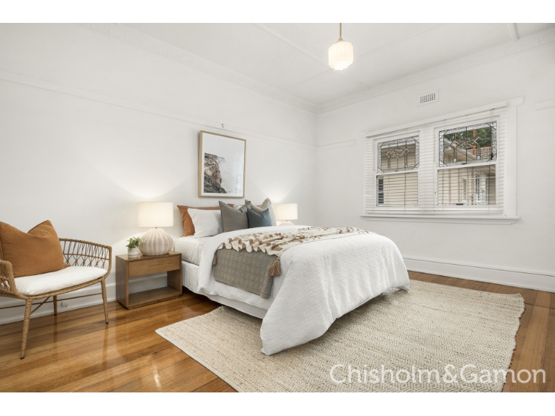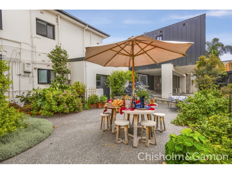 You will love the space, style and abundant Northern light in this stunning Spanish inspired, first level apartment which features your very own private staircase entry. Tall decorative ceilings, beautiful leadlight windows and doors, wonderful big light filled rooms, a gorgeous sunroom make for the ultimate in Bayside living. Set in a boutique Strata block of only 6 where a pick of the many Elwood Village cafes and bars are at your door and a short walk takes you to the beach and Acland Street. Private entrance, wide entrance hall big North facing living room, 2 large bedrooms with built in robes, delightful sunroom or office, stylish gourmet kitchen with dishwasher, modern bathroom, separate laundry area, reverse cycle heating and cooling plus gas space heating, beautiful polished solid timber floors, access to delightful communal garden. Car space is a stacker please check measurements.