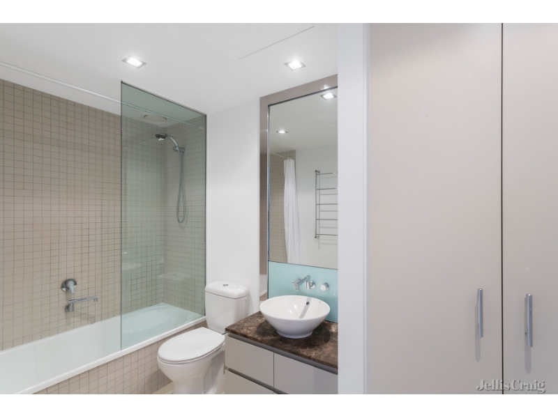 Situated in the well-designed and beautifully maintained Metropolis Building, this one-bedroom apartment is spacious inside. One large bedroom with BIR's, a good-sized bathroom, and a cupboard laundry. Modern kitchen with stone bench tops, gas cook top and Smeg dishwasher, open plan living area overlooking the living room, which opens to a balcony offering side views of the bay. Very secure building with security entry, 24/7 building management, concierge services, Residents' Library, swimming pool, gym, porte cochere, and undercover security carpark. The Metropolis is a premier apartment complex that features an exceptional custom interior of the highest quality and workmanship. Jump on the tram at your doorstep and get arty at the beguiling National Gallery of Victoria or the Arts Centre. Please note that the hot water usage is embedded with Origin Water is South East Water for usage Jellis Craig Inner North Property Management invites you to inspect this property. If you would like to inspect this property please click ‘book inspection’ or ‘make an appointment and we will be in contact to arrange a suitable time. Alternatively, you can email the agent or visit the property listing on www.jelliscraig.com.au and click ‘Book Inspection'.