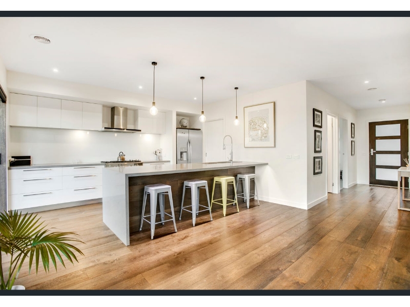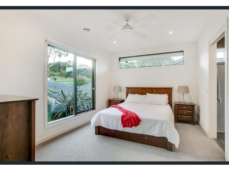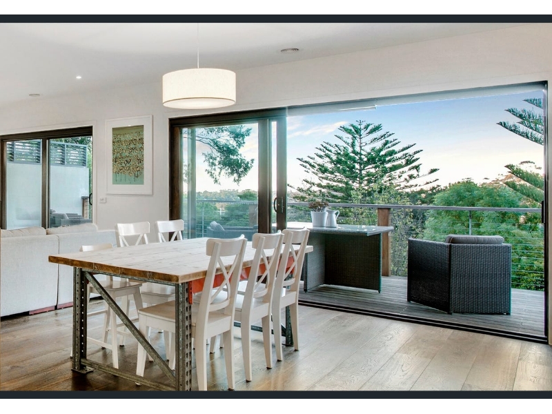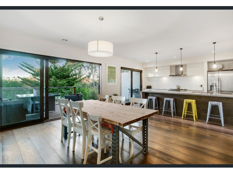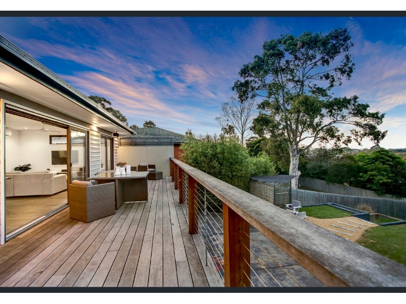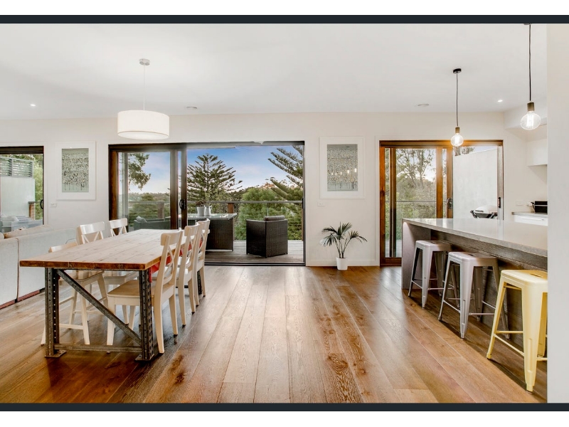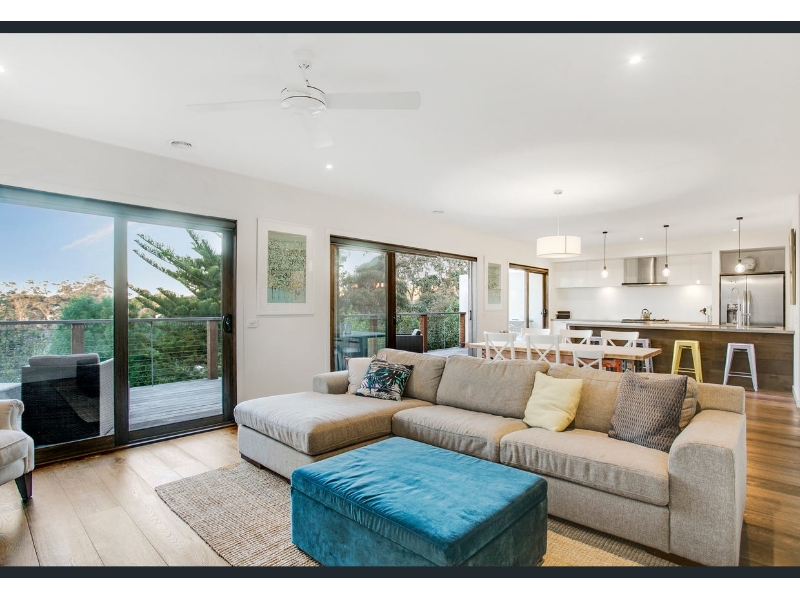 Designed for modern family life, this beautifully renovated home combines style, comfort, and functionality in one highly sought-after floorplan. Boasting four generous bedrooms with built-in robes, an ensuite and powder room, dual living zones, and a full central bathroom adjacent to the well-equipped laundry, this home effortlessly caters to growing families. The contemporary kitchen is a chef’s dream, featuring breakfast bar, and a huge walk-in pantry, perfectly blending style with practicality. Stacker doors throughout the home invite the outdoors in, connecting both levels to expansive decked alfresco spaces, ideal for entertaining, family gatherings, or simply enjoying the coastal lifestyle. From the upper-level balcony, enjoy a sneaky bay and city glimpse—perfect for morning coffee or evening relaxation. Elegant touches throughout include a fresh white colour palette, timber flooring, square-set cornices, and soaring high ceilings, while ducted heating, split-system cooling, and ceiling fans ensure year-round comfort. Families will appreciate the additional features, including off-street parking to the front and rear, a cubbyhouse for the kids, and a dedicated outdoor sitting area to soak up the seaside ambiance. Perfectly positioned to enjoy the best of Mount Martha, the home is within walking distance to South Beach, local village shops, quality schools, bus transport, and the picturesque Balcombe Estuary. Combining a premium location with thoughtful design, this property offers a lifestyle of convenience, comfort, and coastal charm.