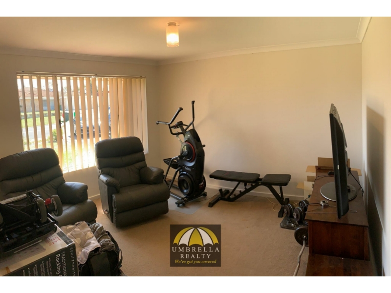 This stunning 4 bedroom 2 bathroom home has the best of location. Situated on Chapple Drive its moments to schools, shops, the estuary, the sports centre and much more! Available 29th April 2024 Property Features Include: - Reverse cycle air conditioning located in the lounge; - Large open plan lounge, dining and kitchen; - Kitchen offers ample cupboard space and gas cooktop; - Main bathroom offers the luxury of a bath and vanity storage; - There is also a separate lounge/ study at the front of the property; - Master bedroom offers walk-in robe; - Minor bedrooms offer built in robes; - Little to no maintenance gardens; To arrange a viewing select "Book Inspection" or for more information call our 24-hour line on (08) 9779 9990. Click HERE to complete an application form through 2apply, or collect from the office. To be prepared for the application process be sure to have 100 points of ID and proof of income. The property must be viewed prior to submitting an application. Umbrella Realty would like to state that no representation or warranties of any nature within this advertisement are given, intended, or implied. Any interested parties should rely on their own inquiries. Property Code: 1102