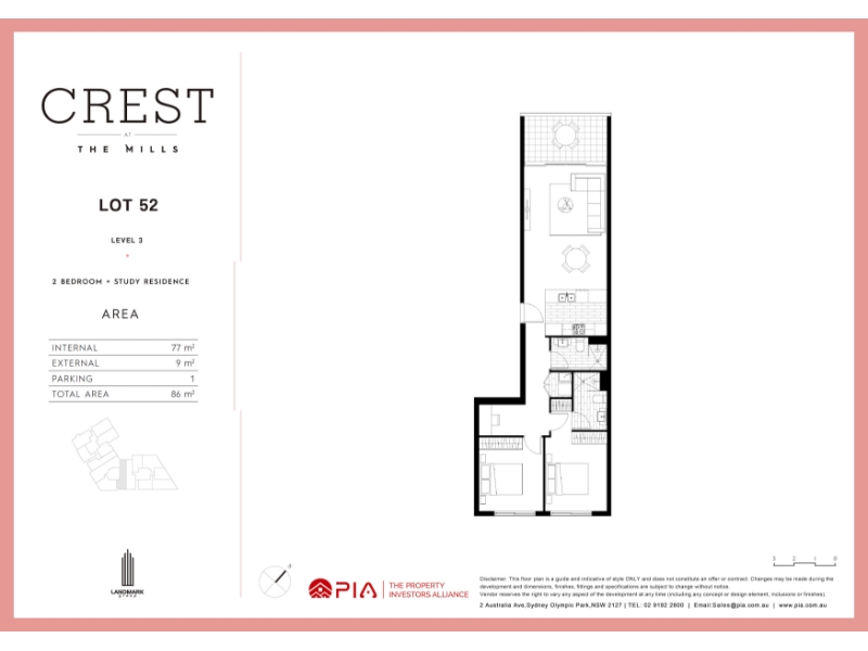 Welcome to Crest At The Mills, a bold urban retreat in the rapidly evolving suburb of Merrylands. Created by award-winning architects Marchese Partners, This new development will transform a historic milling estate into a revitalised residential precinct. Embrace comfort and style just moments from Parramatta’s burgeoning CBD and mere steps from the beautiful Holroyd Gardens nature reserve. A metropolis on your door Living at Crest At The Mills puts everything you need at your fingertips, from specialty purveyors of fresh food and supermarket convenience to fun, fashion and dining. - Less than 3 minutes away, Stockland Mall is brimming with 200+ new places to shop alongside established major retailers and cafes. - 8 minutes’ walk to Merrylands train station, bringing you the vibrancy of Parramatta’s CBD and Westfield is only 2 train stops away. - Easy access to M4 motorways, taking you to all hotspots around Sydney - Surrounded by premiere schools such as the King School, Holroyd High School, Merrylands Public School - Close proximity to Rosehill Garden, Western Sydney University and Sydney Olympic Park, the World Class Westmead Hospital and Holroyd Private Hospital Designed for comfort Crest At The Mills’ landscaping blends park-like spaces and peaceful garden zones with shared BBQ areas and seating. Apartment features an exceptional level of comfort and style - Stylish living spaces with open plan layout flowing onto sun-soaked balconies and courtyards - Sleek kitchen with stone benchtop, tiled splashback, DeLonghi stainless steel appliances including gas cooktop, oven and dishwasher plus plenty of storage - Fully tiled bathrooms with mirror, wall mounted vanity, frameless glass shower screen - Internal access to basement parking spaces with video intercom - Internal laundry with clothes dryer Disclaimer: The particulars are set out as a general outline for the guidance of intending purchasers and do not constitute an offer or contract. All descriptions, dimensions, references to conditions and necessary permutations for use and other details are given in good faith and are believed to be correct, but any intending purchasers should not rely on them as statements or representations of fact, but must satisfy themselves by inspection or otherwise to the correctness of each item, and where necessary seek advice. No third party supplier or their agents has any authority to make or give any representations or warranty in relation to this property. Images are computer generated and indicative only. Completed apartments may vary from the image shown.