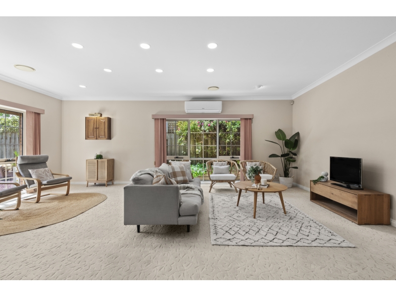 Spacious design and a well-considered layout combine to offer outstanding family living in this quality home occupying on a generous block. Perfectly positioned in a quiet court, a short stroll from Kindale Playground, within walking distance of excellent primary and secondary schools, moments from Waurn Ponds shopping and entertainment precinct, Porter Avenue shops, Highton Village, local sports and recreational facilities, less than 5 minutes from Deakin, the Epworth and Ring Road, this address offers fantastic local convenience and excellent accessibility to amenities. Neatly presented behind manicured gardens, the home offers a welcoming appeal on arrival. Stepping into a wide entry hall, the classic interiors showcase high ceilings, decorative cornice, and ceiling roses. Timber bifold doors open to the spacious master suite featuring generous walk-in robes and ensuite with corner spa, shower, and separate toilet. Three further bedrooms include walk-in and built-in robes, serviced by a central family bathroom and separate toilet. The formal lounge at the front of the home offers a sophisticated space to relax or entertain with a picturesque garden outlook. At the rear, an expansive open plan living area enjoys excellent natural light, with kitchen, casual and formal dining areas, and a large family room. The quality kitchen features timber cabinetry, 600mm electric oven, 900mm electric cooktop, raised breakfast bar, walk-in pantry, and is centrally positioned for easy entertaining indoors and out. Additional features include central ducted heating throughout with three zones to lounge, living and bedrooms, split system heating and cooling, ducted vacuum system, interior security system, intercom to front door, large laundry, generous storage provisions, Foxtel antenna, deadlocks to all external doors, electric hot water service. Outside, the verandah leads out to a large north-facing entertaining area overlooking lush established gardens, providing a private, protected, and tranquil space to enjoy the sun and entertain. The oversized double garage includes a storeroom and rear access to the covered veranda for secure and convenient entry to the home, plus driveway space allowing for additional off-street parking. Nearby schools include Clairvaux and Bellaire Primary Schools, Belmont High and Christian College campuses. Please note Security System and Door Bell to be removed prior to tenancy commencing.