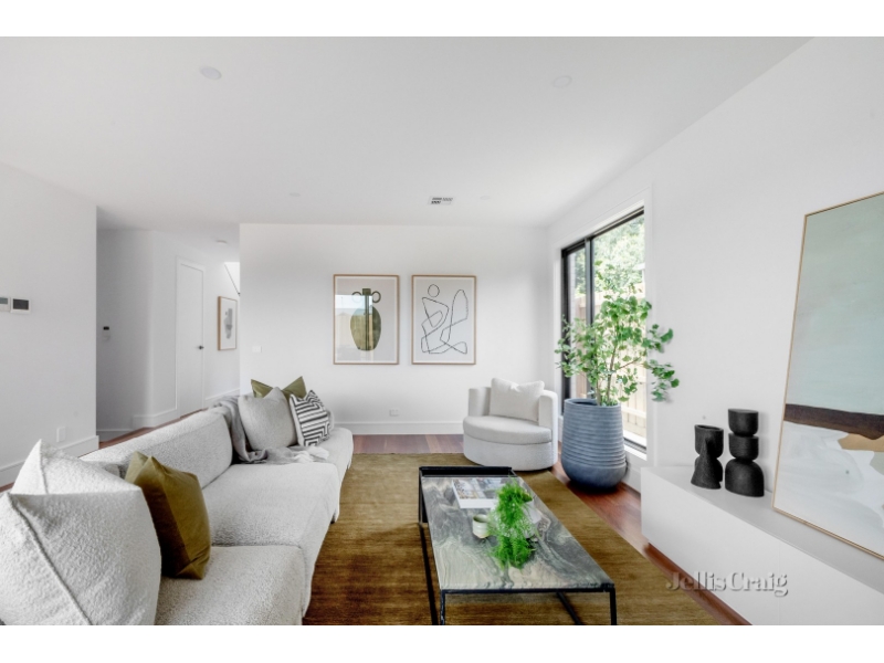 Effortlessly harmonising contemporary design with the warmth of a family home, this brand new residence blends modern luxury with the allure of low maintenance living. Tucked away at the rear of a select enclave of four residences, it embodies the essence of contemporary living with high-end selections, quality finishes, and illuminated by abundant natural light. The open plan living and dining area enjoys a seamless connection to the outdoors, where a decked alfresco entertaining area relishes the afternoon sunshine. The kitchen offers an impeccable layout with quality Miele appliances, gas cooktop, oven, dishwasher, ample cupboard space, direct views of the alfresco, and a butler's pantry/laundry intelligently combining convenience and functionality. Find a second living zone upstairs and a bedroom suite complete with an ensuite on each level catering to your family's changing needs, whilst two additional bedrooms, a well-appointed bathroom, and powder room complete the picture of this stylish home. Enhanced with timber floors, ducted heating/cooling, ducted vacuum, intercom, alarm system, and a double garage. This park side location is a short walk from Gardiners Creek Trail, High Steet cafés, Glen Iris Primary School, and Glen Iris Station. Would you like to Inspect this property? To select your preferred inspection time click the “Book Inspection” button and enter your details and we will respond instantly! Alternatively, visit the property advertisement on www.jelliscraig.com.au and click Book Inspection.