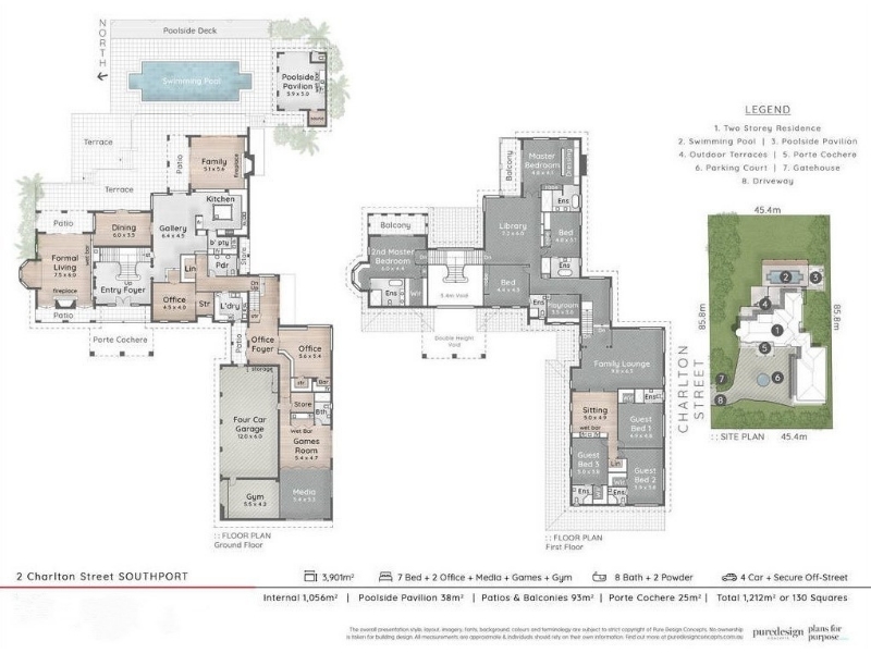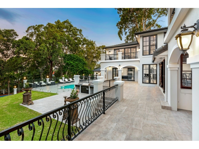 This spectacular 1,250 sqm grand home fresh from a top to bottom renovation, is an iconic symbol of what can emerge when the best of yesterdays design is coupled with today's cutting edge technology & luxurious amenities. A home of this size, situated on approximately 1 acre in the prestigious TSS Southport Precinct is simply unheard of and places this property in a league of its own. A short distance to world famous ocean beaches, the Southport International Marina, minutes away from Brickworks Village and prestigious private schools. A beautiful gated private property that is surrounded by a parklike setting, with lush landscaping, specimen trees, water views and large outdoor entertaining terraces. Enjoy the seven well-proportioned en-suite bedrooms with beautiful ornate plaster ceilings and luxuriate timeless fittings. The coziness of the living rooms together with an array of other entertaining areas accompanied by 2 fireplaces, ducted aircon/heating this classic Hamptons haven is the ideal property for relaxing with family and friends. The interior of the house enjoys a spacious and open layout off the great marble foyer and sweeping American Oak staircase, with formal dining room and Italian marble bar, multiple living rooms, a library, 2 executive offices, 2 powder rooms, snooker and games room with Italian marble kitchenette, an expansive gourmet kitchen and butlers pantry that will please the most discerning cooks and boasts state-of-the-art appliances. Enjoy all the amenities that come with both countryside estate living and an urban modern lifestyle including outdoor BBQ and kitchen, gym, home theatre, four-car garage, pool cabana, sauna, external bathroom and shower that looks out to a 40 foot swimming pool facing north for all day sunshine, this elegantly-designed, custom-made home combines a classic Hamptons exterior with modern design elements and touches, creating a beautiful estate with a modern flair, both inside and outside. Immerse yourself in your favourite music in every room with the wireless Sonos home sound system and enjoy the convenience of high-speed Wi-Fi throughout the property in a secure environment containing extensive security measures including perimeter floodlighting, back-to-base alarm system, high-tech 20 camera CCTV security system and remote viewing. • 7 bed, 8.5 bath estate with marble finishes & floors, ornate ceilings & imported chandeliers • Multiple formal and informal living and dining areas plus home cinema and two studies • Gourmet kitchen with solid marble benches, Smeg triple oven + butler's pantry • Two sumptuous master suites, each with private terraces, walk-in robes & marble ensuites • Three-bedroom guest wing with kitchenette to accommodate extended families or visitors • Designer Guild drapery, Projects QLD custom cabinetry, gym and Sonos home automation • CCTV surveillance and security, ducted zoned air-conditioning • Landscaped grounds with pool, cabana, sauna, BBQ, outdoor bathroom & travertine terrace