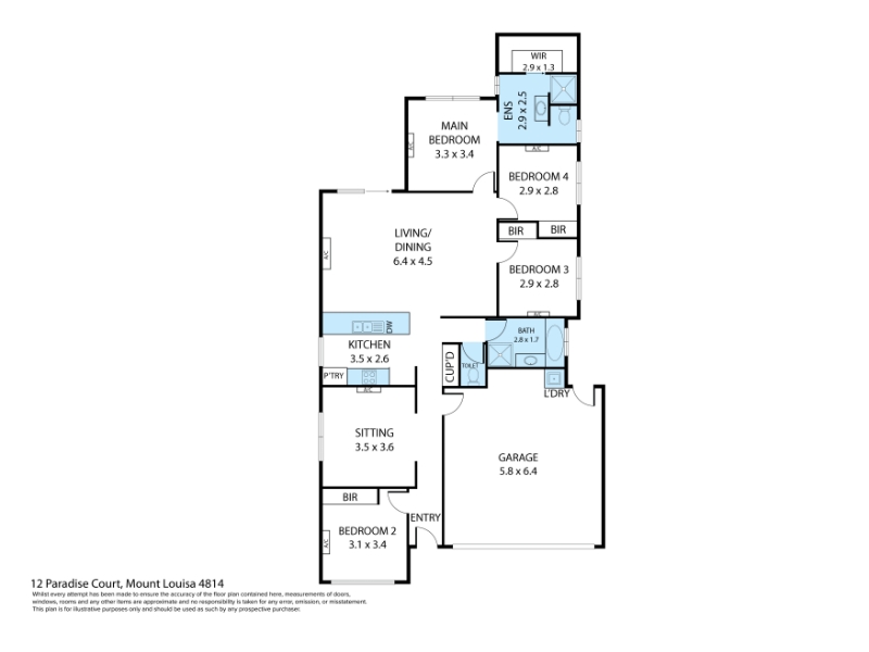 Welcome to 12 Paradise Court in the sought-after suburb of Mount Louisa. This brand new 4 bedroom, 2 bathroom house is now available for lease. Featuring a modern kitchen with a dishwasher, spacious living areas, and a double garage, this property is perfect for families or professionals looking for a comfortable and convenient place to call home. With split system air conditioning, an outdoor entertaining area, and a fully fenced yard, this property has everything you need for a relaxed lifestyle. Located in a quiet street, this home offers privacy and tranquility while still being close to schools, shops, and transport. Please note - All parties should make and rely upon their own enquiries in order to determine the accuracy of the information supplied. Some file photographs in use may have been taken some time ago or modifications have been conducted at the property since the photography. Please rely on your own inspection and investigations to determine if this property is suitable for your requirements and information provided is general in nature. Ray White Townsville bears no liability for any loss sustained due to inaccuracy or omission.