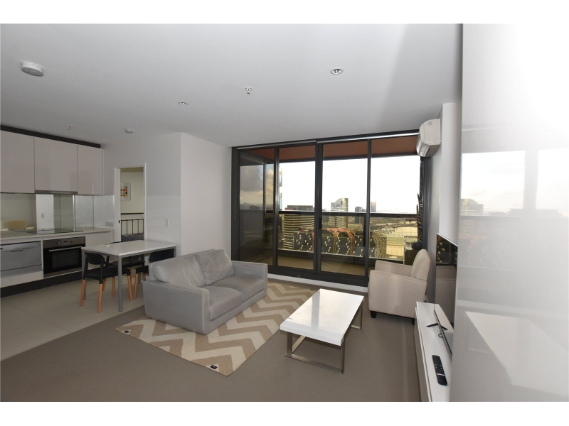 A fresh blend of sunlit space and unrivalled style, this immaculate 2 bedroom, 2 bathroom, with balcony apartment captivates on the 33rd floor of the Madison building. As a part of the New York-inspired Upper West Side complex, the luxury living is superbly matched by a compelling lifestyle. Simply stroll to Southern Cross trains, Marvel Stadium, Flagstaff Gardens, Crown, free city trams, Coles, outlet shopping and some of the best cafes, bars and restaurants in the whole of Melbourne. The effective use of floor-to-ceiling glass is an overriding feature of this radiant retreat. Attracting northern light with ease, spacious open-plan living and dining pivots a high-quality kitchen boasting stone-topped surfaces, a mirrored splashback and stainless-steel appliances including an electric cooktop, dishwasher and a fridge/freezer. Step outside to a sheltered balcony featuring spectacular views sweeping over Marvel Stadium and the neighbourhood skyline with a sizeable blue-water glimpse of Port Phillip Bay. The robed bedrooms are generous in scale and filled with natural light, serviced by a perfect pair of deluxe bathrooms boasting floor-to-ceiling tiles and mirrored cabinetry. Additional features include a concealed laundry with washing machine, a tiled entrance, split-system heating and cooling, double glazing and roller blinds. Madison comes complete with video intercom entry, concierge, and premium resort-style access to pools, gyms, a BBQ terrace, gardens, a rock climbing wall and a multi-purpose function room with kitchen facilities. Your search stops here! * Photo identification will be required upon entering the property. Please contact our agent for your personal tour of this home today.