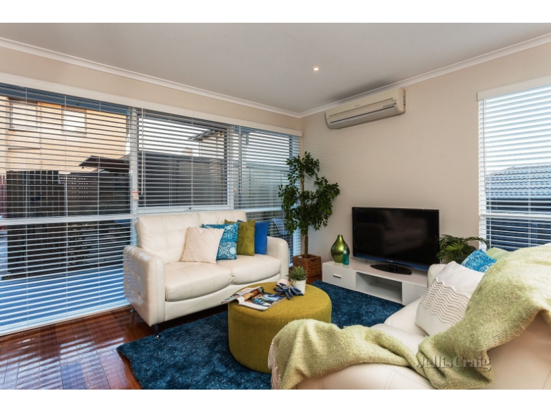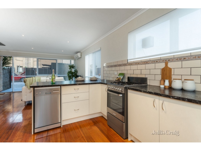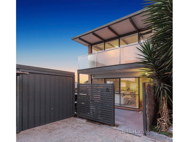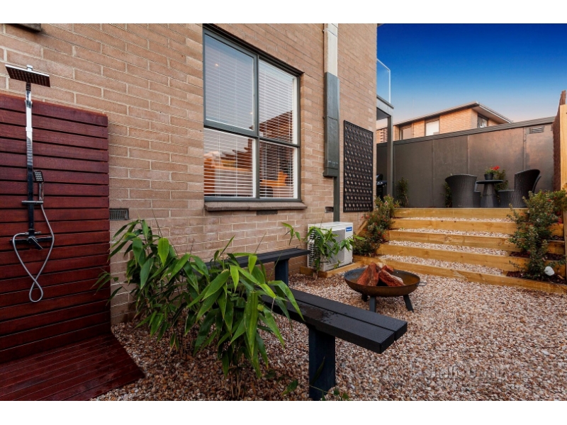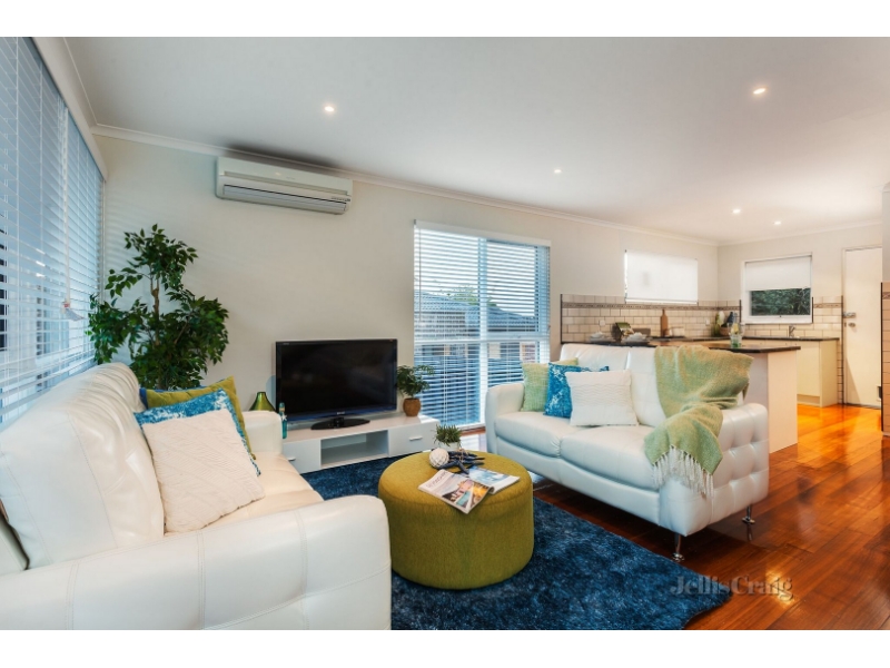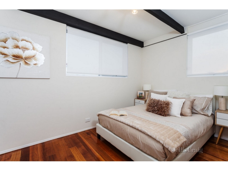 Tucked away at the rear of a well-presented block, the home is set among easy care gardens which offers plenty of space for sun drenched alfresco entertaining. Inside, polished Tasmanian oak floors flow through an open-plan living and dining room to the crisp, contemporary kitchen where quality stainless steel appliances and ample preparation space ensure hosting is easy. Access to the garden just adds to the convenience, a laundry and powder room complete the ground floor. Up a striking staircase the tranquil bedrooms both offer fitted storage, the master also boasting a broad balcony which takes in views across the rooftops - the rooms share a bright central bathroom. An outdoor shower compliments the outside entertaining area whilst a lock-up garage and split system heating/cooling are also on offer. Located in a very convenient pocket of beachside Mentone, close to schools, cafes, shops and public transport. Bedrooms - 2 Kitchen -1 Bathrooms - 1 Parking - 1 Living Areas - 1 External Areas - 1 Heating / Cooling – Split System