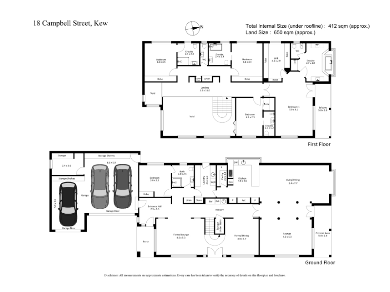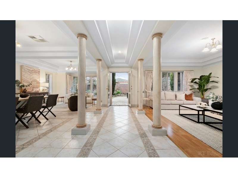 Proudly positioned on the corner of Hunter Street, you'll be impressed by the substantial dimensions of this stately five-bedroom, five-bathroom residence. On a cherished tree-lined street, sunshine streams across the high-walled garden, north façade and verandah, flowing into the expansive rumpus room, family room, meals and granite kitchen. A dream space for effortless entertaining, this space is equalled by a similarly substantial formal dining and lounge flaunting a soaring double-height void and chandeliers. Your guests will feel welcome in the ground floor bedroom with dual-access ensuite. Upstairs, every bedroom boasts an ensuite and the master will fulfill all your needs with a dressing room, a sun-splashed balcony and an enormous twin vanity spa ensuite. Immediately comfortable for a large family to enjoy, there's a three-car auto garage, ducted heating and evaporative cooling. Just a few short steps from the Anniversary Trail, Victoria Park, childcare centre, kindergarten and Harp Village restaurants, jump on the nearby tram for an easy trip to Kew Junction, top prestigious private schools such as Methodist Ladies College (MLC), Genazzano College, Ruyton, Camberwell Grammar, Xavier College, Trinity Grammar, etc. and the city.