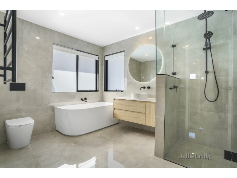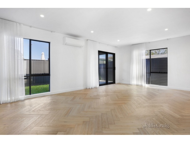 This stunning townhouse offers a perfect blend of style and comfort, making it an ideal choice for those seeking a modern living experience. Situated at the rear of only two properties, this meticulously designed home features three generously sized bedrooms, all with built-in robes. The master bedroom, located on the ground floor, boasts a luxurious ensuite for added convenience. The expansive open-plan living and dining area flows seamlessly to a covered decked alfresco, perfect for entertaining, and overlooks a low-maintenance garden. The contemporary kitchen is a standout with high-end appliances, an induction cooktop, stone benchtops, and ample storage. A separate study and laundry complete the downstairs layout, providing practical living solutions. Upstairs, you'll find a spacious kids' rumpus room, two additional bedrooms, and a large family bathroom. With a single lock-up garage and plenty of driveway parking, there's room for all your vehicles. This impressive home is equipped with split system units throughout, ensuring year-round climate control. Located just a short walk from Bicentennial Park and Chelsea Heights Primary School, this home offers both convenience and a desirable lifestyle. Offering exceptional finishes and a thoughtful layout, this townhouse promises a sophisticated yet relaxed living experience.
