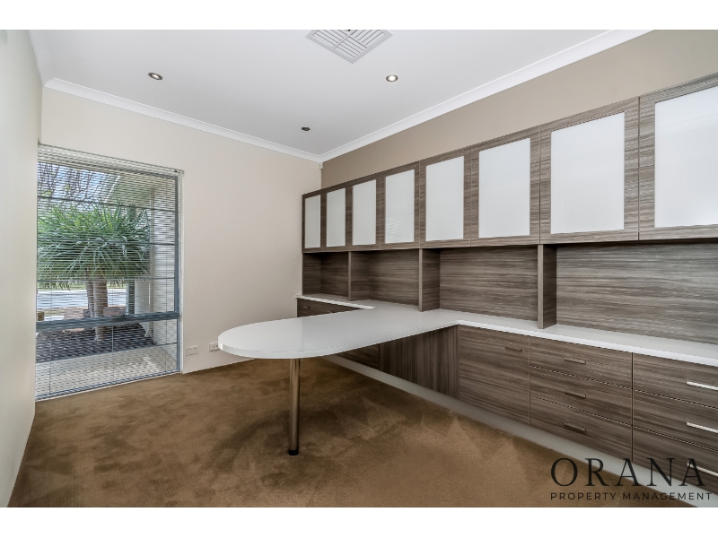 This low maintenance surprisingly spacious home has all the extras, making this a very practical family home Beautifully presented, it is a must see and is sure to impress. Set comfortably on an easy care block with stunning landscaped gardens, overlooking the beautiful Discovery Park & conveniently located close to schools and shops. Features: - The spacious master offers double robes and large ensuite - Two additional bedrooms with walk in robes are serviced by a family bathroom and separate toilet - Modern laundry located off kitchen - Spacious modern kitchen offers European styled 900mm stainless steel oven, gas hotplate and rangehood and overlooks a light and bright living /dining area and beautifully landscaped backyard - Large enclosed theatre room - Electric shutter to main bed - Solar 5kw - Built in cabinetry in theatre, family room and study - Raised 31c ceilings throughout - Quality window treatments - Quality flooring - Reticulated landscaped gardens with feature pots and wall features - Reverse cycle ducted air-conditioning Available: Now Pets: Considered upon Application Unfurnished Lease term: 12 months plus Parking: Double lock-up garage **PLEASE DO NOT CALL THE OFFICE REGARDING VIEWING TIMES AND APPLICATION UPDATES AS EVERYONE WILL BE UPDATED VIA EMAIL AS SOON AS THIS INFORMATION BECOMES AVAILABLE** **APPLICATIONS** The application code is 6000. You may apply for this property prior to viewing, however, please note you will be required to either attend a home open or have someone view on your behalf. To apply for this property follow the prompt from the QR code found on the last photo of the property advert. **INSPECTIONS** Please register your details using the 'Inspect' or 'Register' button located on this page to be notified immediately of any upcoming inspection times. You will also be notified of any changes or cancellations only if you are registered. * *IMPORTANT** Whilst every care is taken in the preparation of the information contained in this marketing, Orana Property Management will not be held liable for any errors in typing or information. All information is considered correct at the time of advertising.-