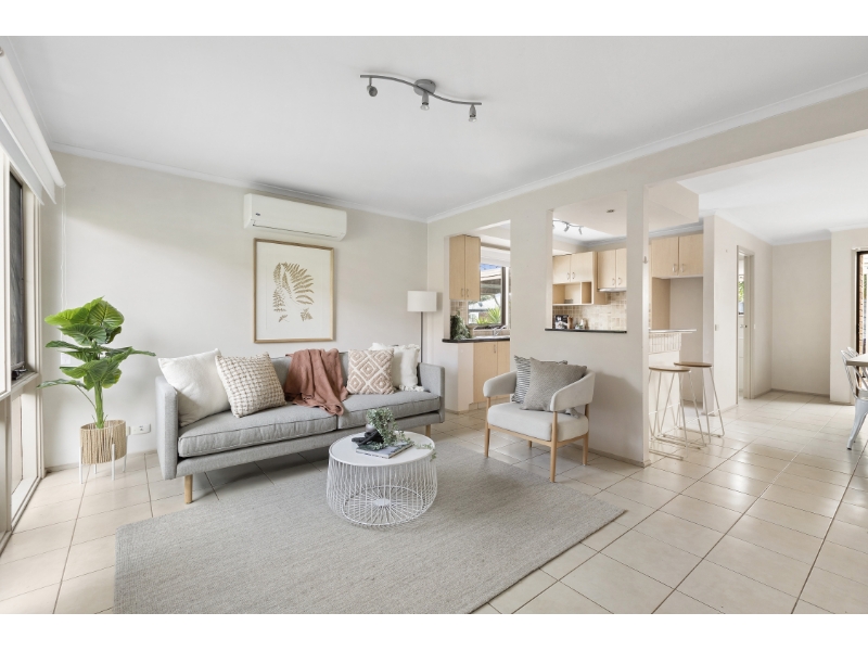 Bright, spacious and brimming with alfresco allure, this double-storey townhouse is positioned in a tranquil pocket close to it all. The daily convenience is outstanding, steps around the corner from the local shopping centre, parks, and primary school, together with beachside eateries and train stations in mere minutes. Step into a spacious living room that seamlessly flows to a neat kitchen with granite benchtops and stainless-steel appliances, overlooking a bright and light dining area with sliding doors to a large courtyard garden. Here, you’ll find an expansive deck that’s ideal for entertaining family and friends, extending onto lush lawn, peacefully private and bathed in northern sunshine. Quietly set away from the living zones are three upstairs bedrooms with evaporative cooling, two with built-in robes and the main bedroom with a decked balcony overlooking the treetops, all sharing an immaculate family-sized bathroom with a separate shower and bath. Comfortable now, it’s easy to see the potential to value-add and modernise at your leisure, with extra highlights including a full laundry, second toilet, under-stair storage, split systems and two dedicated parking spaces. Stroll to bus stops, Ritchies IGA, medical facilities and an array of takeaway options, Aspendale Gardens Primary School, and the Edithvale Wetlands, while magnificent beaches, elite independent schools and freeway access are all in easy reach.