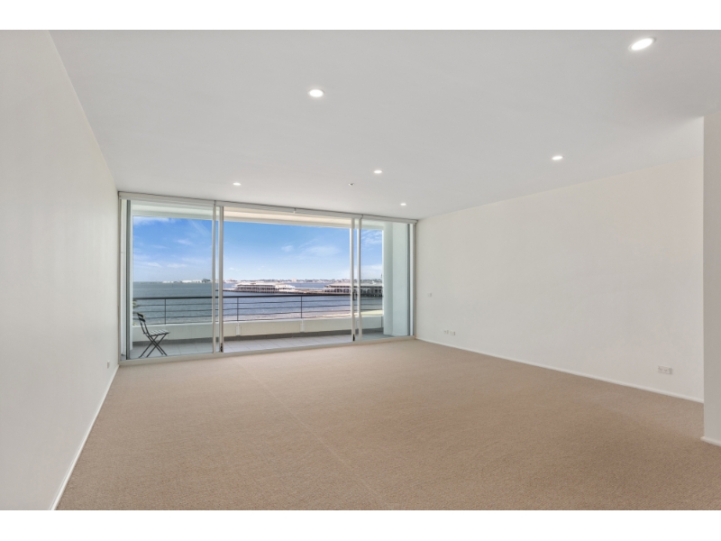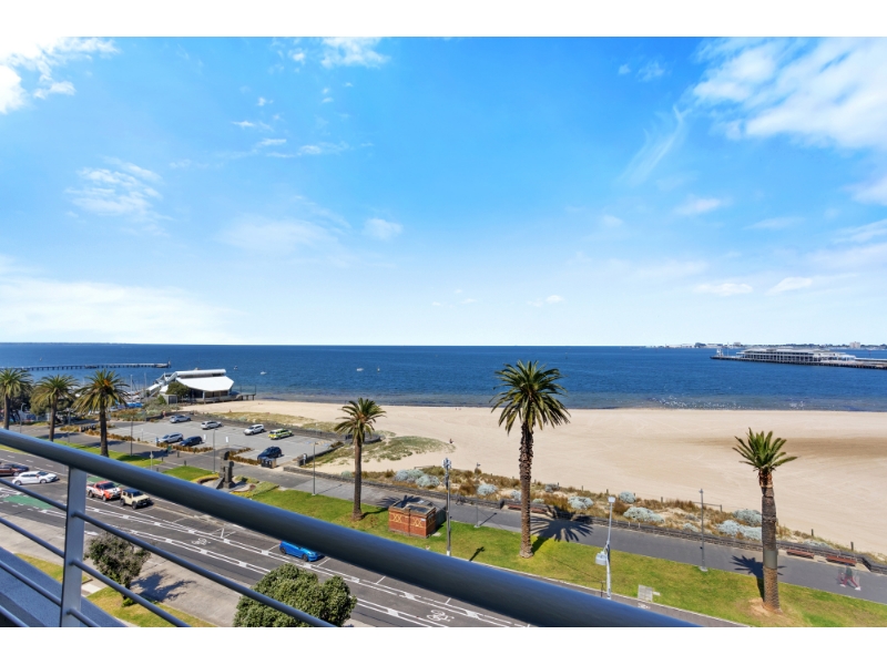 This luxury waterfront apartment located in this tightly held 'Marine Apartments' commands a prime position on the sixth floor that allows uninterrupted bay views. Superbly renovated and offering a free-flowing floorplan delivering an oversized main bedroom with adjacent second bedroom or study. Against a compelling and dynamic backdrop, this sophisticated and sun-filled residence celebrates the sand, sea, and city in everyday living. The generous open-plan living and dining area seamlessly transitions from the indoor to outdoor space with operable floor-to-ceiling windows opening to a private balcony terrace, setting the perfect stage to entertain. The bedroom retreat features a second balcony with city views and is complemented by a sleek freshly renovated ensuite, built in robes and an adjacent study or second bedroom. The main bathroom has also been recently renovated while further features include reverse cycle heating / cooling and two separate basement car spaces and a storage cage. Enjoy spectacular sunsets and embrace a lifestyle of unrivalled convenience, with Bay Street and the light-rail a short walk away and the beach across the road.