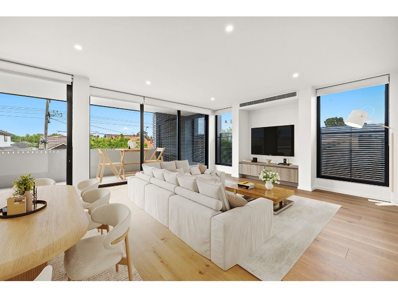 This top-floor apartment faces west, allowing an abundance of natural sunlight—ideal for enjoying breathtaking sunsets. The spacious living and dining area, complete with modern finishes throughout, radiates luxury and comfort. The kitchen is a chef's dream, equipped with high-end appliances, including a gas stove-top, oven, microwave, dishwasher and fridge, all seamlessly integrated into the cabinetry. The kitchen's stone benchtop and open design makes it perfect for entertaining. A separate laundry area, tucked privately off the kitchen, comes with a washing machine and dryer for convenience. The master bedroom features a walk-in robe with ample storage space and an ensuite bathroom. The two additional bedrooms come with built-in robes and share a stylishly appointed bathroom. Additional features include timber-floor boards, block-out roller blinds in all rooms, designer lighting fixtures, video intercom, secure entry, lift access, and a security system. You are provided with two individual parking spaces in the basement garage. Ideally located in Malvern East, this exclusive boutique residence, one of only 4 apartments, offers access to an array of amenities. Koornang Road's vibrant shopping strip, cafes, and restaurants is just across the street, and Chadstone Shopping Centre is only a short drive away. Convenient access to public transport and major highways ensures easy travel to the city or down the coast. Don’t miss this opportunity to make this remarkable property your new home!