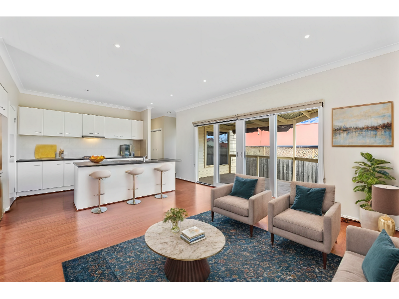 Located a hop, skip and a jump from town, this beautiful 2 bedroom home is easy care living close to amenities. The home offers master bedroom with a generous WIR, both bedrooms are serviced by a spacious & stylish bathroom. The open plan kitchen & living area opens onto an undercover entertaining deck, a perfect spot to enjoy the sunset. The gas ducted heating, split system heating/cooling will provide year round comfort and the remote controlled garage, secure parking. A delightful landscaped courtyard, garden shed and 2100 litre rainwater tank complete this well- loved home.