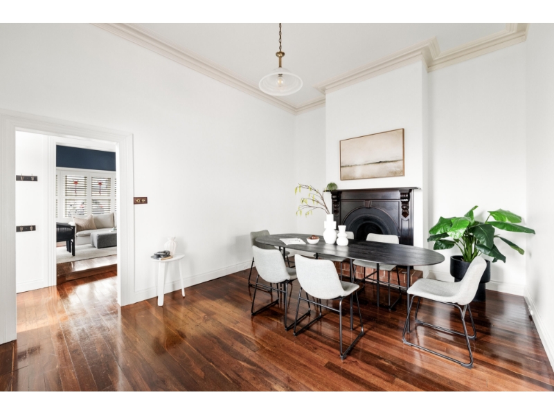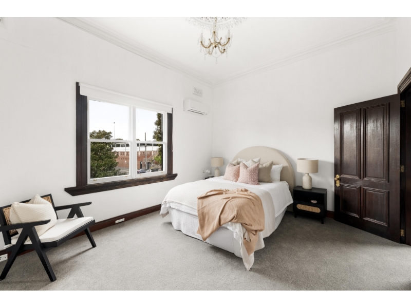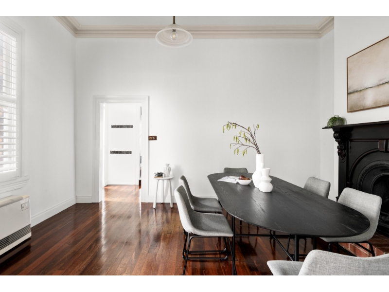 Built circa 1888, 18 Lulie Street, a former corner shop, forms part of the historic row of single-fronted terraced dwellings known as Winniefred Terraces and presents a truly unique opportunity to secure a home in this 135-year-old landmark building. Meticulously renovated, stunning period features combine with contemporary additions to transform this rare property into a stylish urban residence. Seize the chance to own an exclusive piece of old-world Abbotsford, steps to Victoria Park and Victoria Park train station. - Spacious and inviting living area upon entry, showcases stunning stained-glass windows and plantation shutters. - Beautiful dining space featuring original open fireplace connects to the contemporary, light-filled kitchen boasting modern appliances including dishwasher, stainless-steel splashback, and ample cupboard space. - Three bright bedrooms complete with built-in robes, primary bedroom with charming open fireplace, are located on the upper level for privacy. - Period style central bathroom features shower over spa-bath, and houses laundry provisions. - Private, brick paved, outdoor entertaining courtyard offers secure off-street parking via driveway access on Abbott Street. - Notable features include attractive period staircase, polished timber floorboards, high ceilings and ceiling roses, period trims and doors, plantation shutters in living and dining, split-system air-conditioning, heating, and under stairs storage. - Positioned opposite Victoria Park, and only steps to Victoria Park train station, and Johnston Street cafes and bars. - Moments to Victoria and Smith Street entertainment precincts, and walking distance from tranquil Yarra River and trails, and scenic Dights Falls. - Minutes from the Abbotsford Convent Arts Precinct, Collingwood Children's Farm, Studley Park Boat House, and Victoria Gardens Shopping Centre. - Zoned to Clifton Hill Primary School and Collingwood College. Please register to attend an inspection.