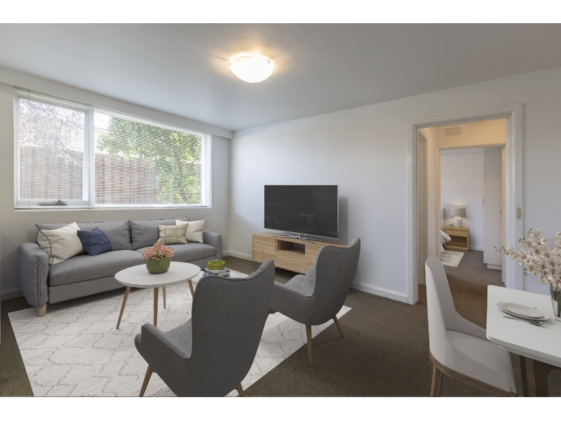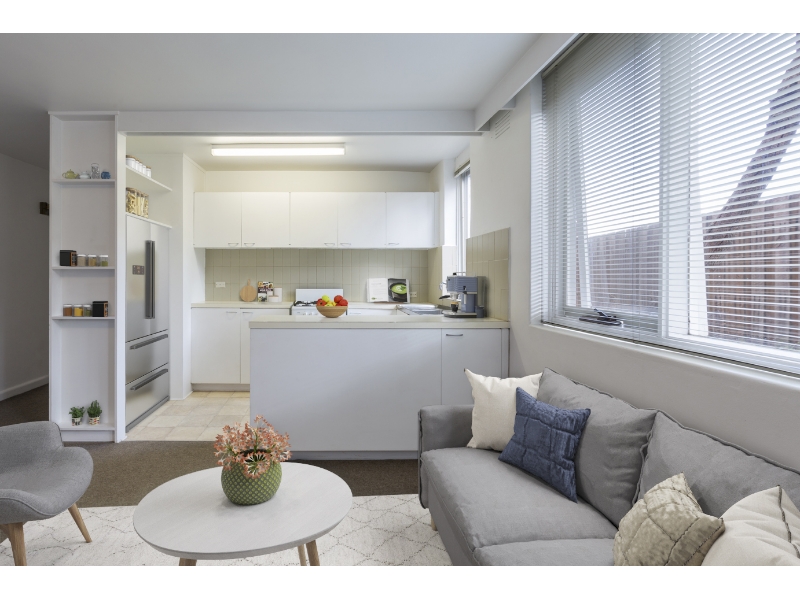 Tucked away at the rear of a mid-century boutique block, this apartment offers a peaceful and private lifestyle with a well-considered open-plan layout. Expansive windows frame leafy outlooks and invite an abundance of natural light throughout the living and dining zone, which is further enhanced by a wall heater providing comfortable warmth during the cooler months. The kitchen is generously proportioned and thoughtfully appointed with extensive benchtops, ample cupboard and storage space, a freestanding oven and cooktop, and bespoke open shelving which is ideal for both everyday living and entertaining. The spacious bedroom is quietly positioned and features a large built-in robe, while the adjoining bathroom is impressively sized and incorporates convenient laundry facilities. Adding to the appeal is secure undercover parking and a highly sought-after Elsternwick location, just moments from local shops, cafés, Harleston Park and a wide range of transport options. Presenting comfort, privacy and convenience, this apartment represents an excellent opportunity in a tightly held pocket.