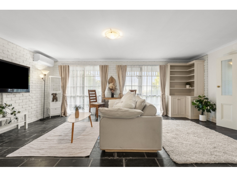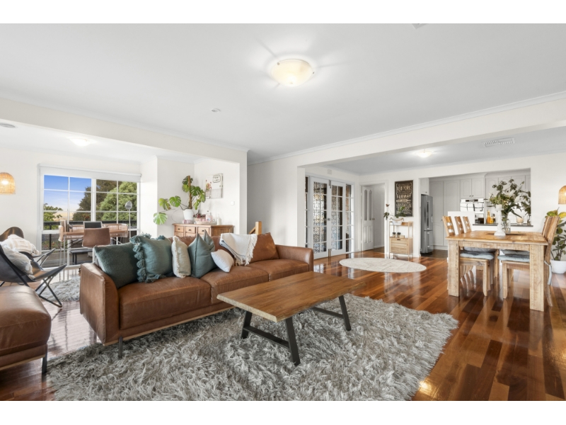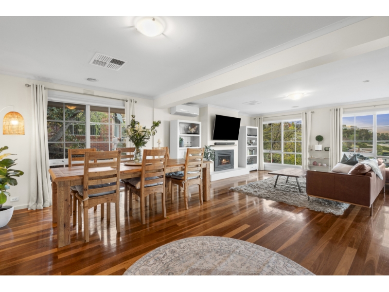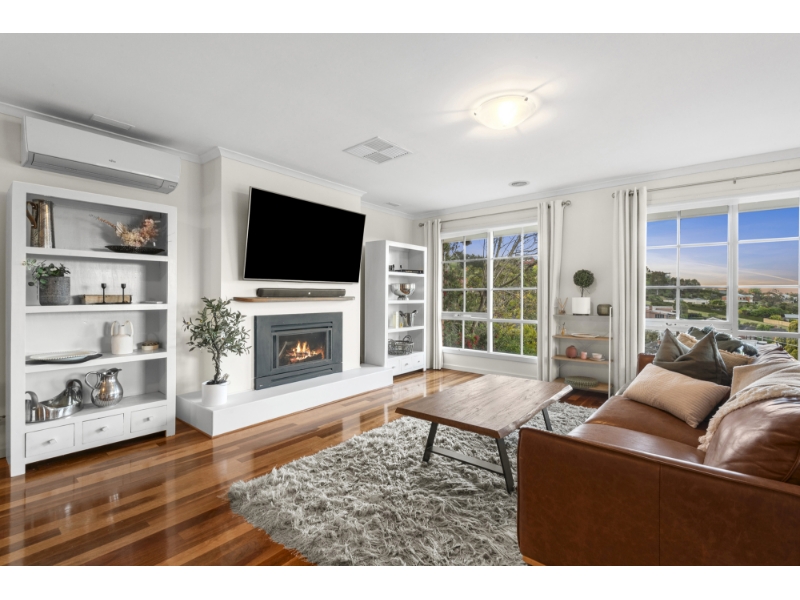 Nestled in an idyllic riverside pocket, this two-storey residence promises a blissful family lifestyle. Slate flooring and character windows enrich the interiors, with both living zones ideally positioned to maximise the northern light. Polished floorboards enhance the upstairs living/dining zone, where you can open the French doors onto the spacious balcony. Whether you're relaxing inside by the gas log fireplace or hosting loved ones on the balcony, you'll never tire of the picturesque outlook over the Highton hills & GMHBA Stadium lights. The kitchen features a built-in pantry and Miele stainless steel appliances (double wall oven, electric cooktop, rangehood, dishwasher). Three bedrooms with mirrored built-in robes (main with ensuite), a retro bathroom, separate toilet and laundry with storage complete the upstairs layout. The downstairs level is ideal for family members who enjoy their independence, complete with a built in kitchenette. The family room overlooks the front garden, while the bedroom boasts mirrored built-in robes and independent access. Other features include ducted heating, evaporative cooling and two split-system air conditioners. A walking path leads through the private backyard, where you'll find a gazebo and lawn area for laidback living. The tandem garage provides secure parking. A short stroll will find you at the Barwon River, where you can enjoy a leisurely walk or kayak. The Barrabool Hills Shopping Plaza takes care of all your shopping essentials, while the nearby Highton Village is home to charming cafes and boutiques. Families will appreciate easy access to Montpellier Primary School, the Christian College campuses and Newtown's private colleges. Please note the inbuilt coffee machine will be removed prior to occupancy.