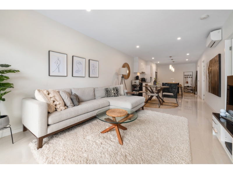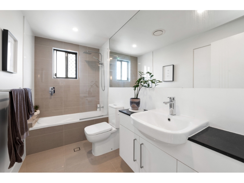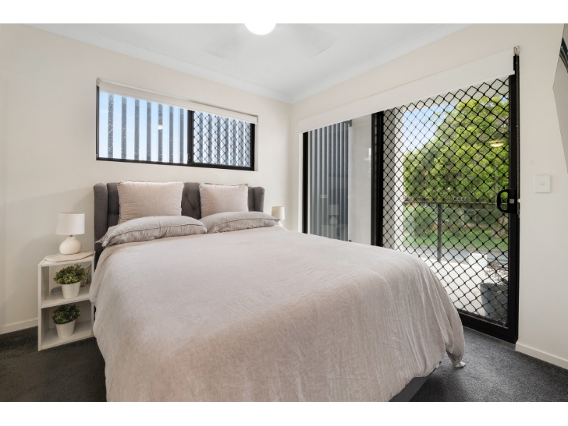 This architecturally designed and meticulously finished home offers a perfect blend of luxury living and entertainment in the sought-after Mount Gravatt area. Within walking distance of local shops, cafes, and restaurants, this property provides ultimate convenience. - Two generously sized bedrooms with an open-plan living area - Easy-care tile flooring, abundant natural light, and air conditioning for comfort year-round. - Gourmet kitchen equipped with a premium dishwasher, sleek black marble-look benchtops, a spacious pantry, and ample cupboard storage. - Well-appointed master ensuite with built-in robe and air conditioning - Luxurious main bathroom designed with modern finishes, featuring a combined shower/bath. - Private undercover entertaining area surrounded by a beautiful garden. - Security screens and intercom for peace of mind. - Single car space with remote-controlled security access. Positioned in an enviable location, this apartment offers low maintenance living with close proximity to Griffith University, public transport, and Westfield Garden City. Just 15 minutes from Brisbane's CBD, this is the perfect choice for those seeking a lifestyle of comfort and convenience.