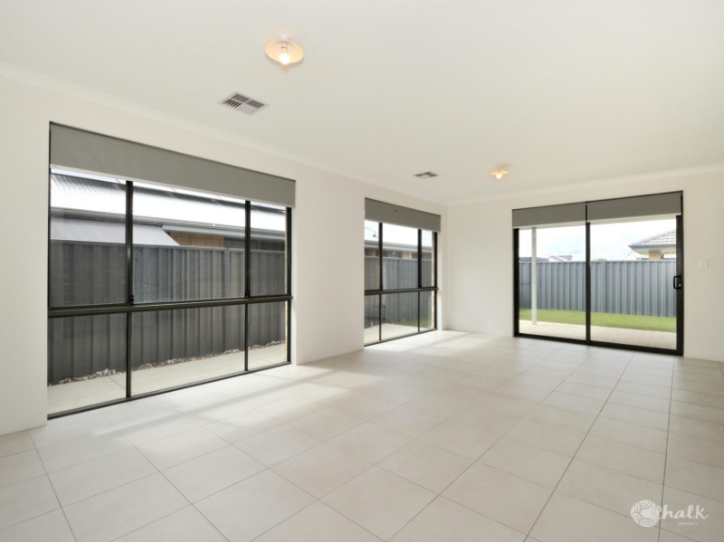 Nestled in the heart of Baldivis is this modern 4 bedroom, 2 bathroom home featuring a family friendly floorplan in a central location close to shops, schools and across the road from an exciting park. Features include: • Large master bedroom with walk in robe and ensuite • Ensuite features an extra large shower recess, double vanity with cupboards • Open plan kitchen/living/dining area with floor to ceiling windows allowing ample natural light • Modern kitchen with double oven, stone bench tops, scullery with dishwasher and breakfast bar • Enclosed theatre room • All minor bedrooms with built in wardrobes • Tiled study area • Main bathroom with bathtub and seperate shower • Laundry off the kitchen with double linen cupboard • Outdoor alfresco area overlooking the low maintenance backyard • Ducted air con throughout TO VIEW THIS PROPERTY Go to www.chalkproperty.com.au/rent/properties-for-rent/ and click on Book Inspection Information Disclaimer: This document has been prepared for advertising and marketing purposes only. It is believed to be reliable and accurate, but clients must make their own independent enquiries and must rely on their own personal judgment about the information included in this document. Chalk Property provides this document without any express or implied warranty as to its accuracy or currency. Any reliance placed upon the information supplied is at the client's own risk. Chalk Property accepts no responsibility for the results of any actions taken, or reliance placed upon this document by a client.