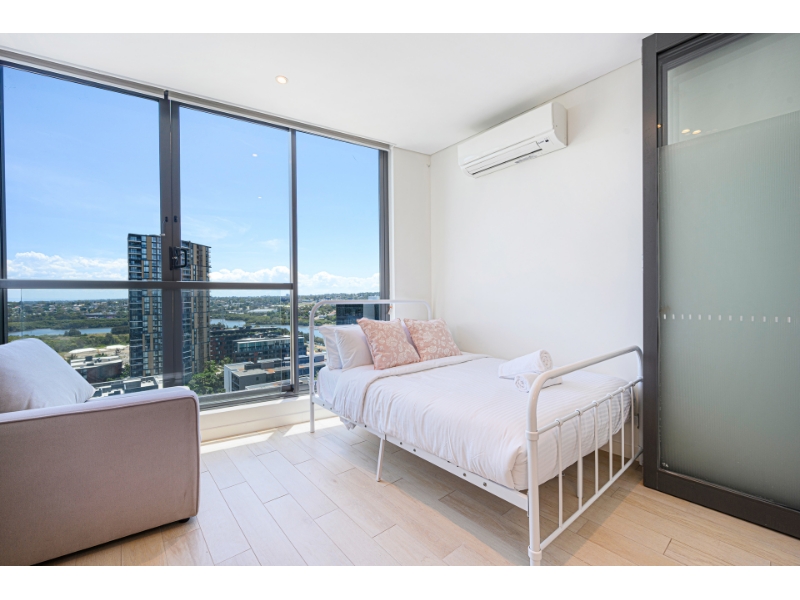 Wechat ID: PRCRICHIE Floating above parkland and river Wake up to a private outlook over parklands and water in this suite-like haven. Modern luxury with pure elevation and aesthetics to match, you'll make daily use of its versatile and bright. Elevated and private outlook over parklands and vast water glimpses Versatile winter garden with floor to ceiling windows and dual access Connected open plan living and dining Good sized, contemporary kitchen with quality, modern appliances spacious bedrooms with built in wardrobes, master with ensuite Bright north west aspect Ample internal storage space One security car space Conveniently located atop Marina Square shopping centre, the free community shuttle, ferry wharf, and footbridge to Rhodes train station.